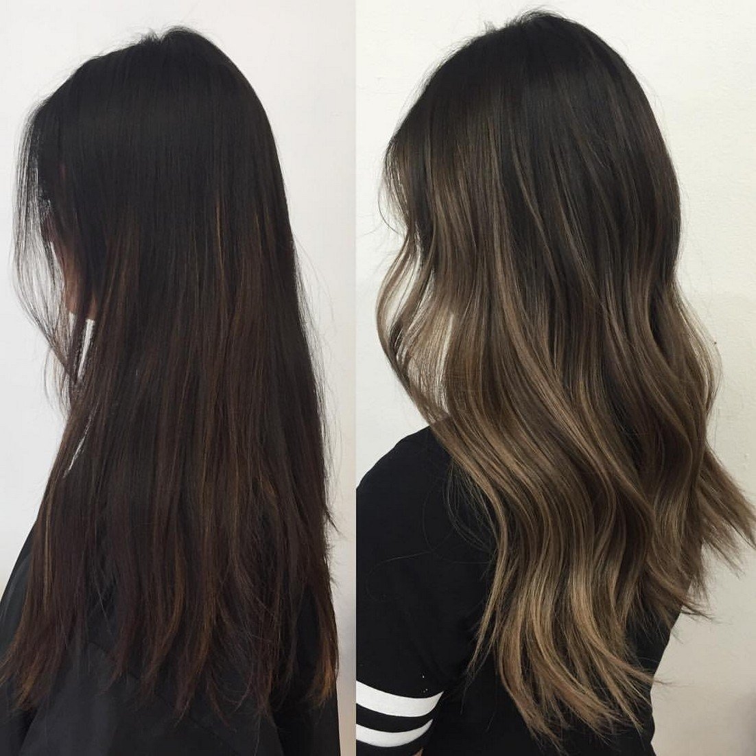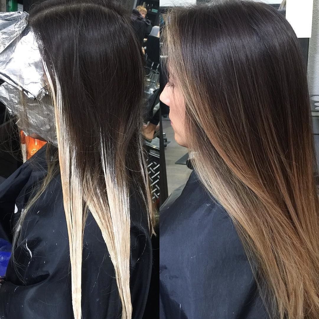 Балаяж окрашивание на темные прямые волосы