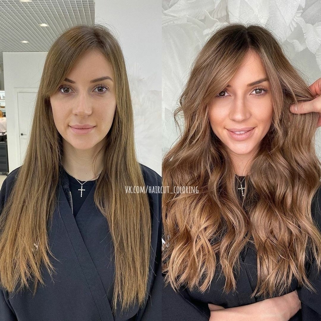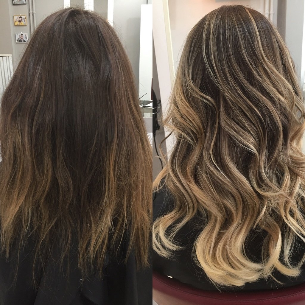 Шатуш на русые волосы до и после