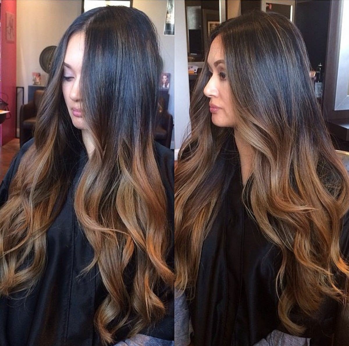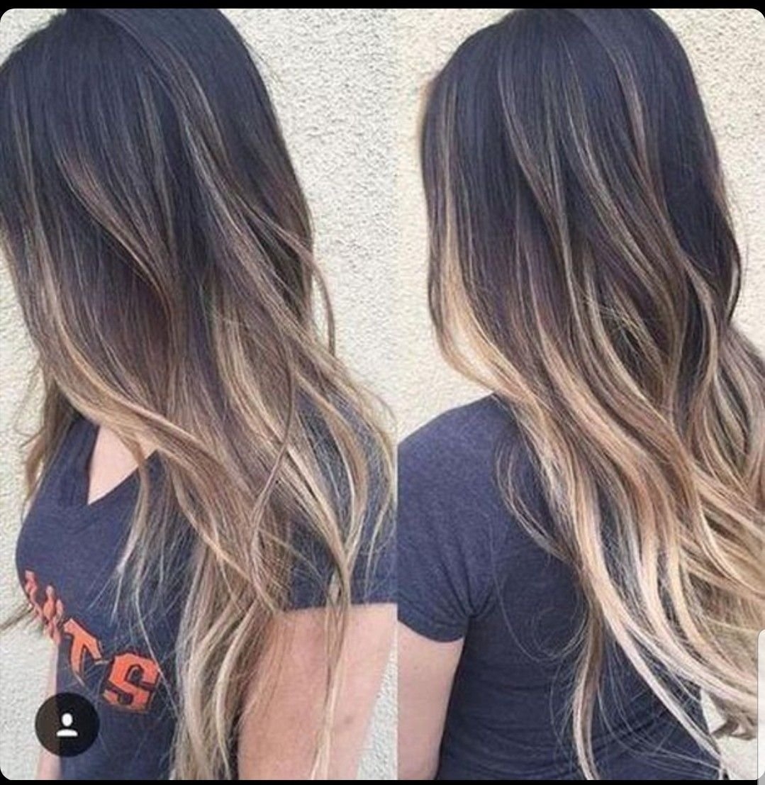 Балаяж на черные волосы длинные
