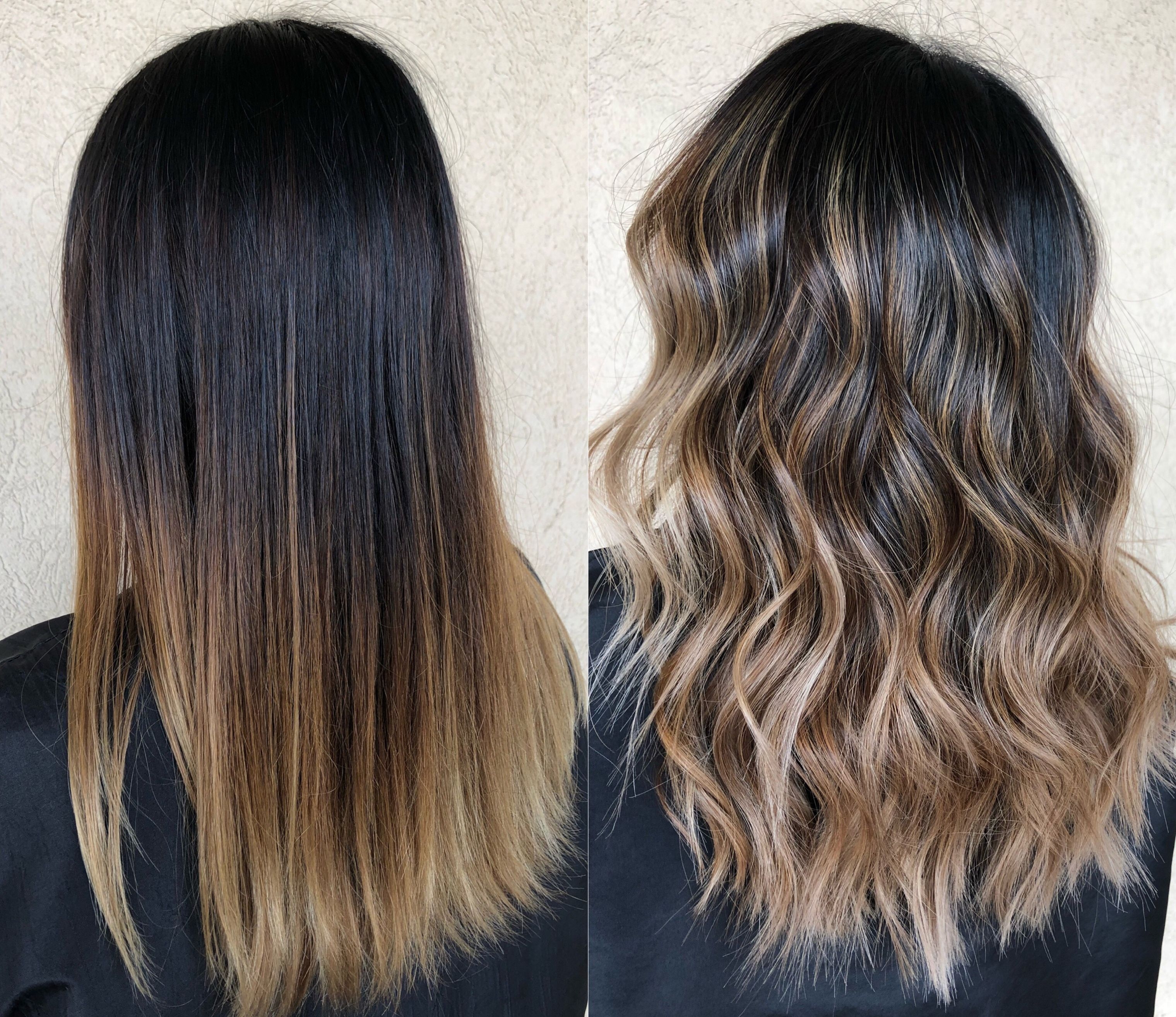 Балаяж на черные прямые волосы