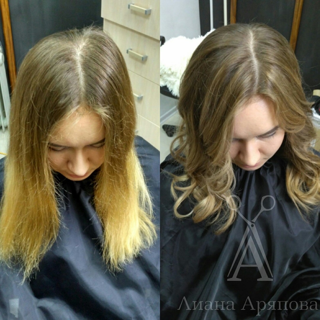 Реконструкция кончиков волос до и после