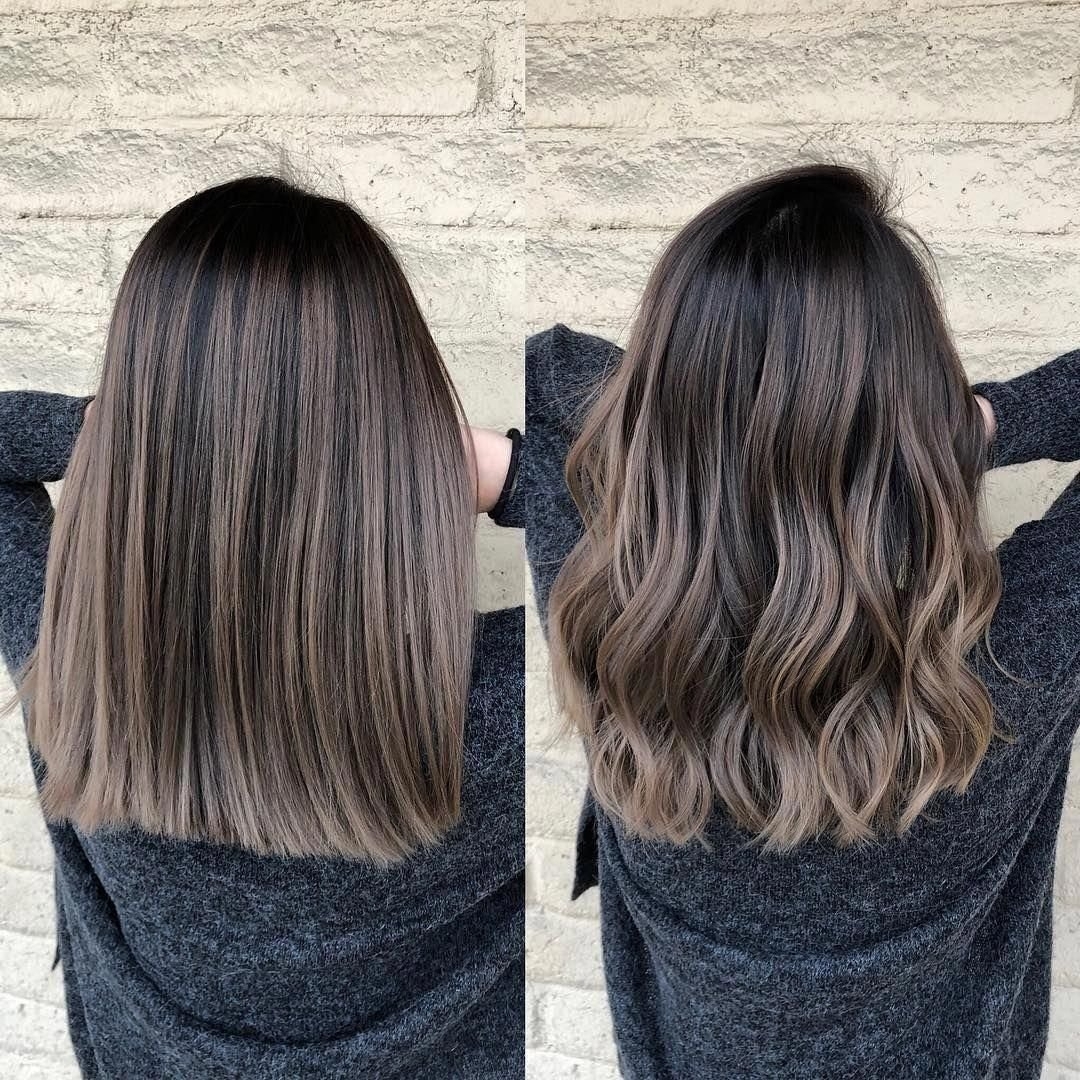 Пепельный балаяж на темные волосы прямые волосы
