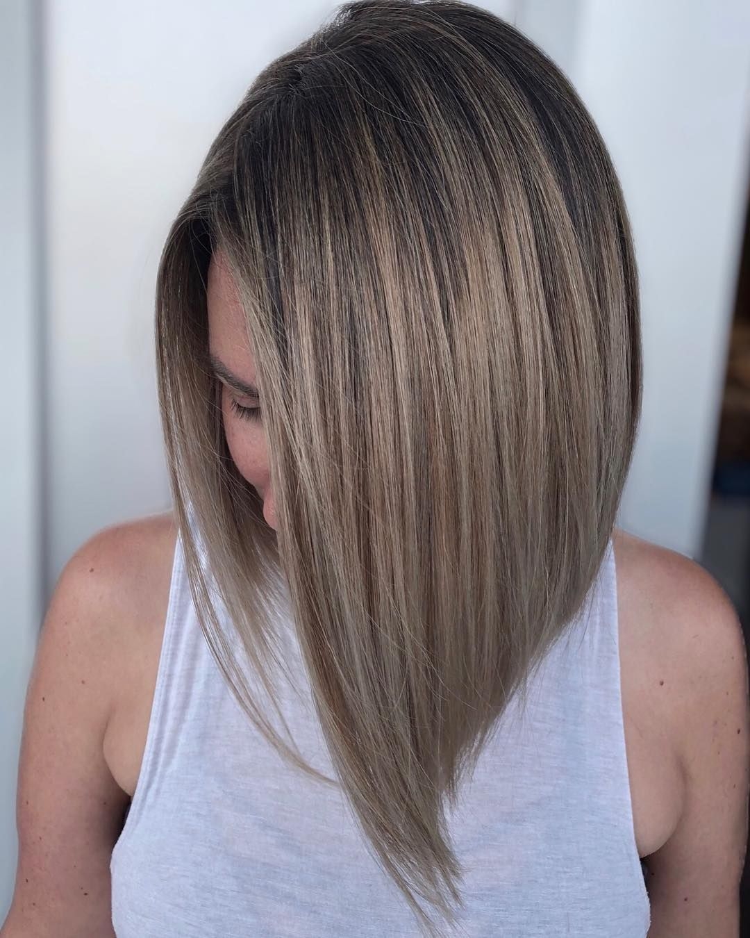 Удлинённый Боб балаяж пепельный