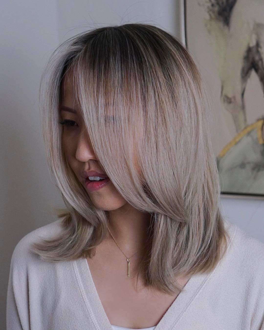 Пепельное мелирование с челкой