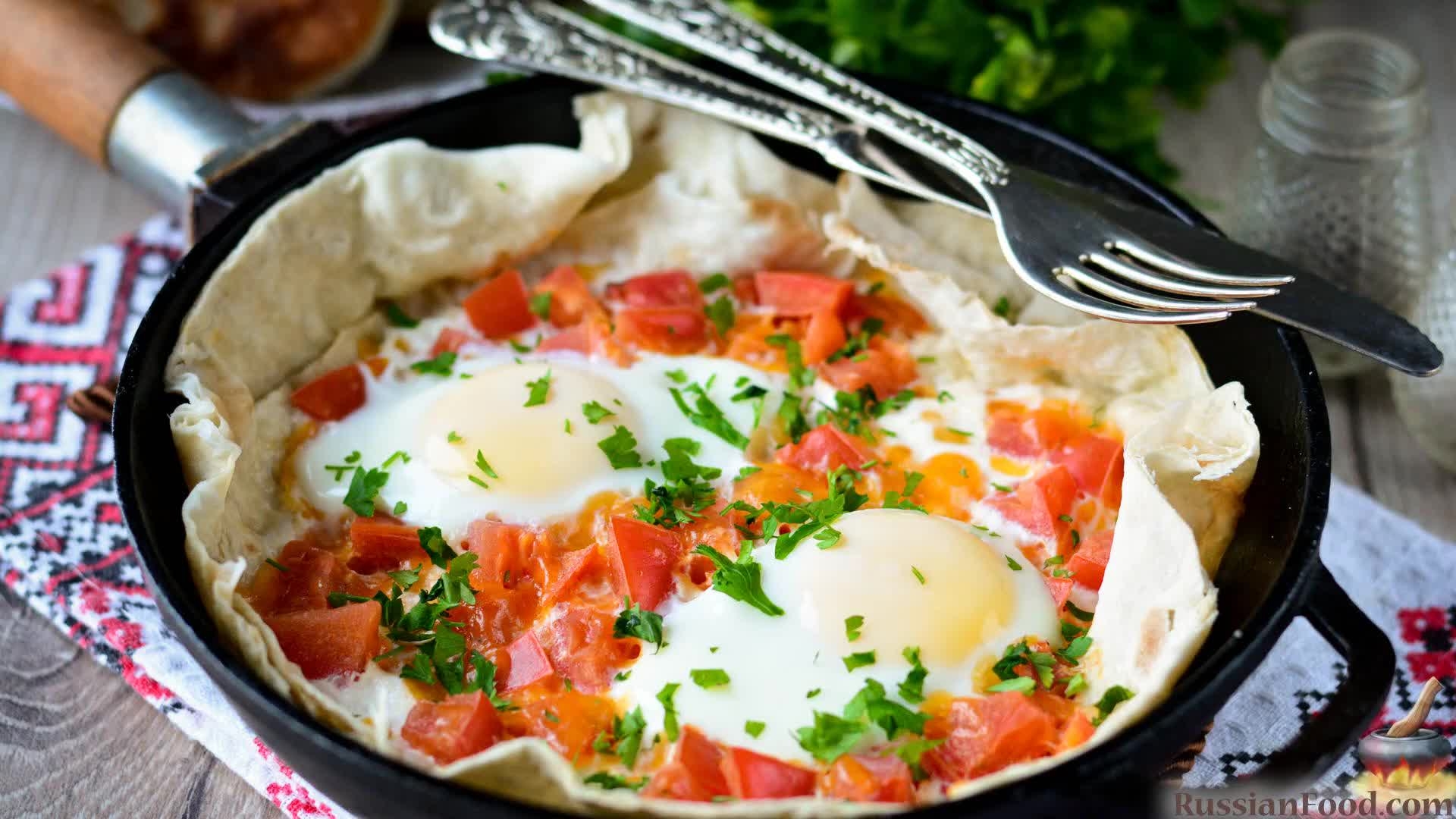 Яичница с помидорами в лаваше