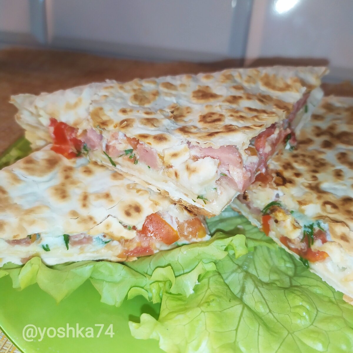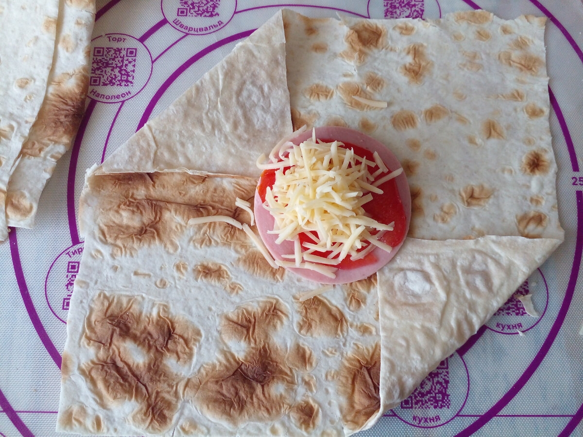 Лаваш с ветчиной и сыром треугольники