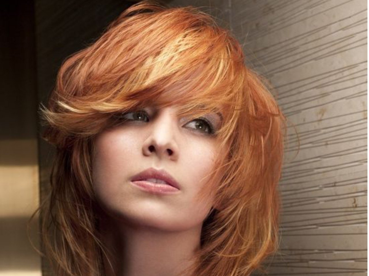 Стрижка рваная лесенка на средние волосы с челкой