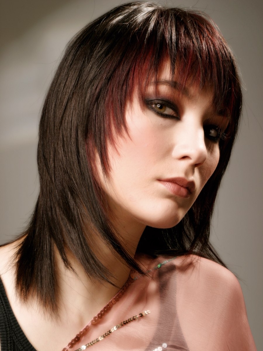 Рваная косая челка на длинные волосы