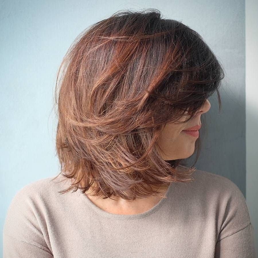 Градуированный Боб на средние волосы с челкой на волнистые волосы