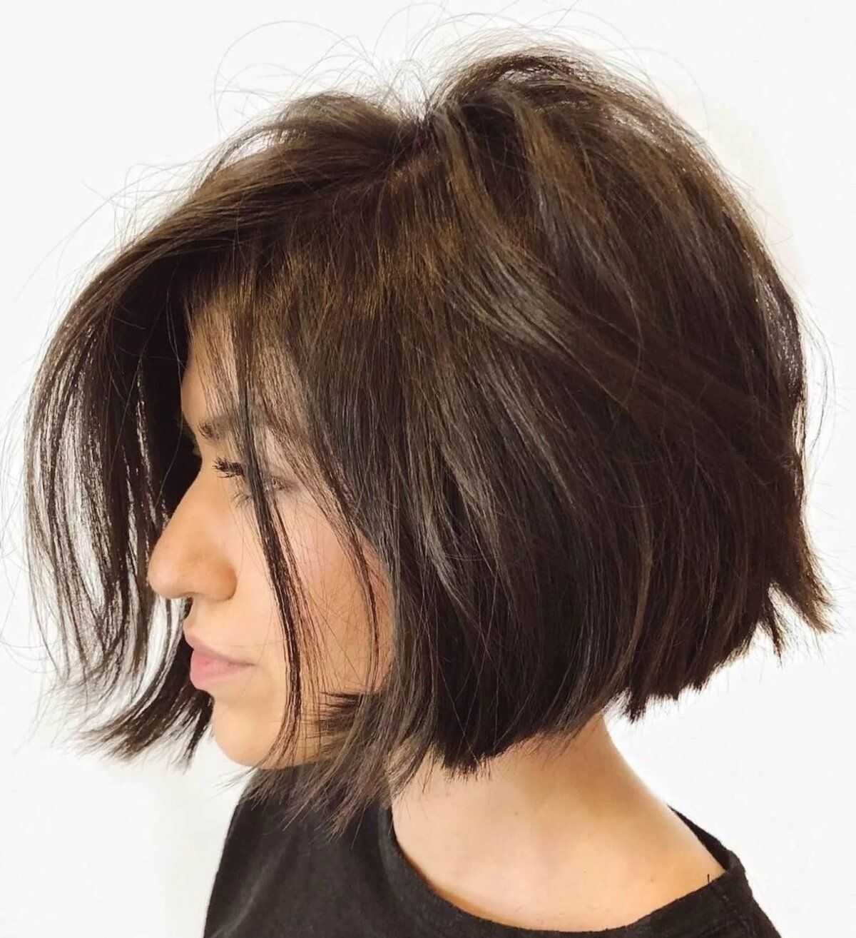 Стрижка каре Боб на тонкие волосы с удлиненной челкой