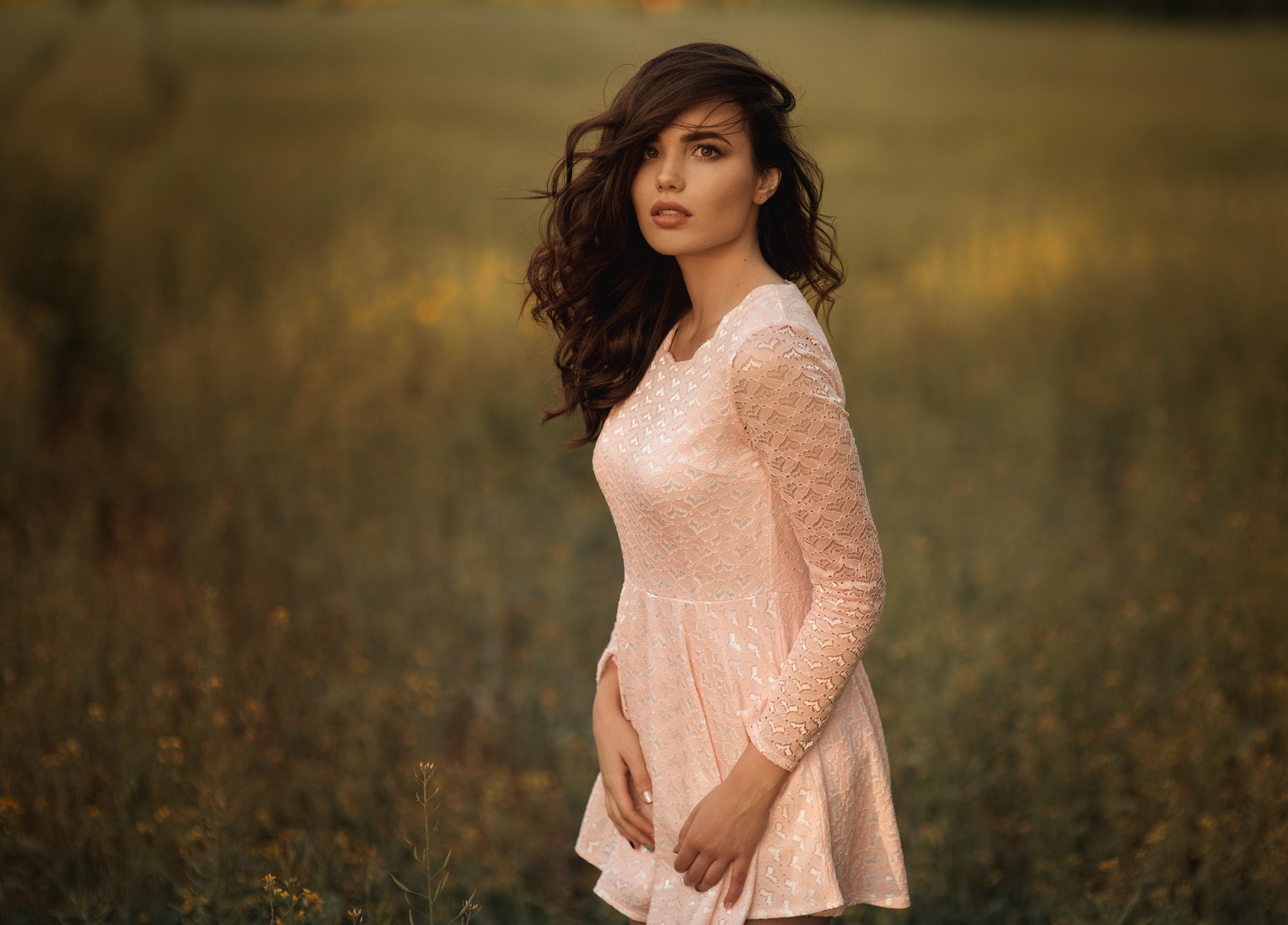 Девушка в пол оборота в платье