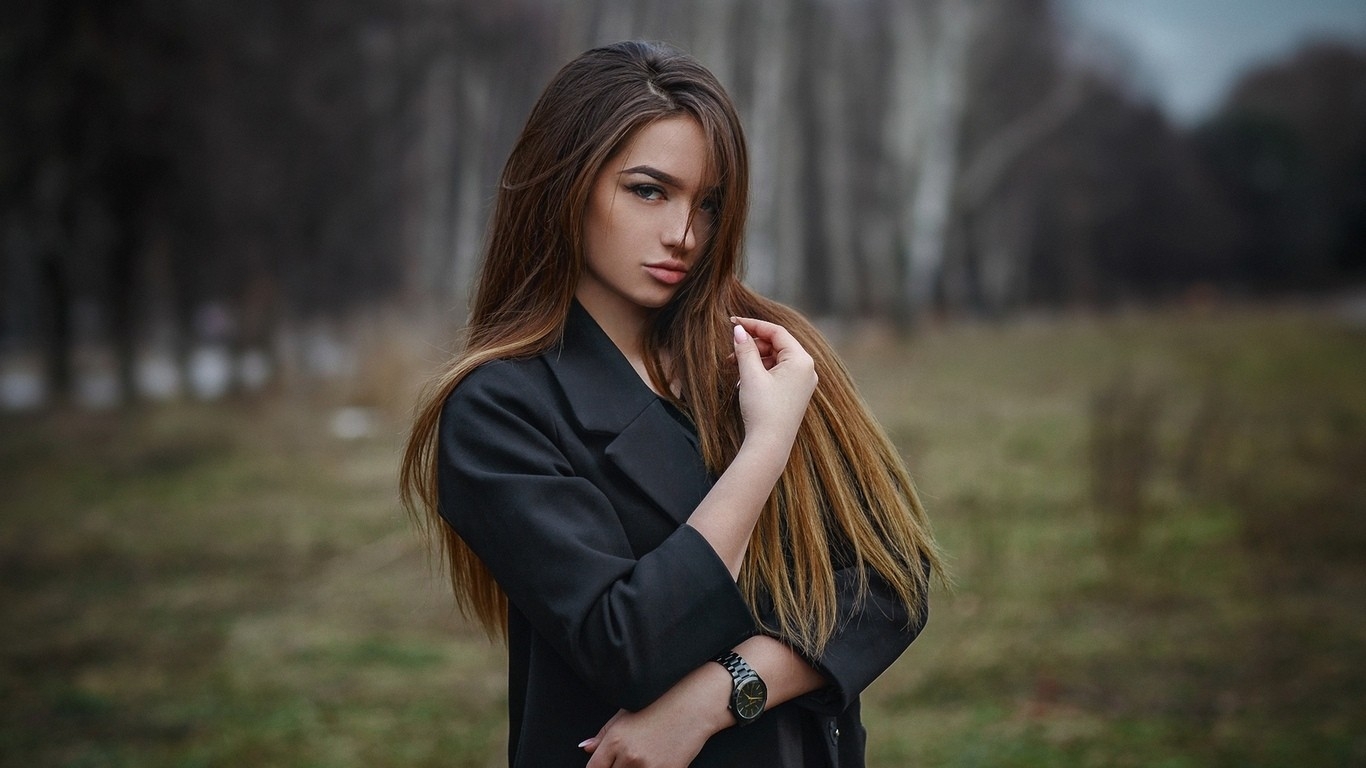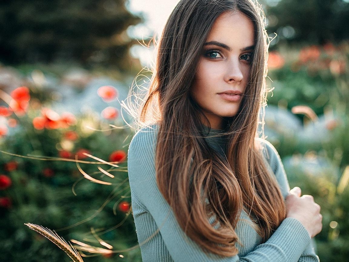 Красивая девушка с каштановыми волосами
