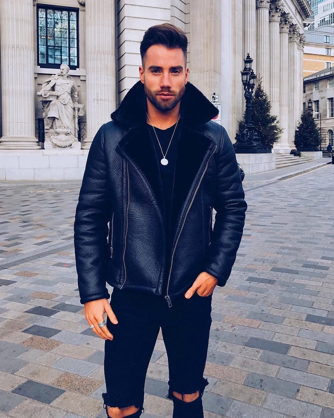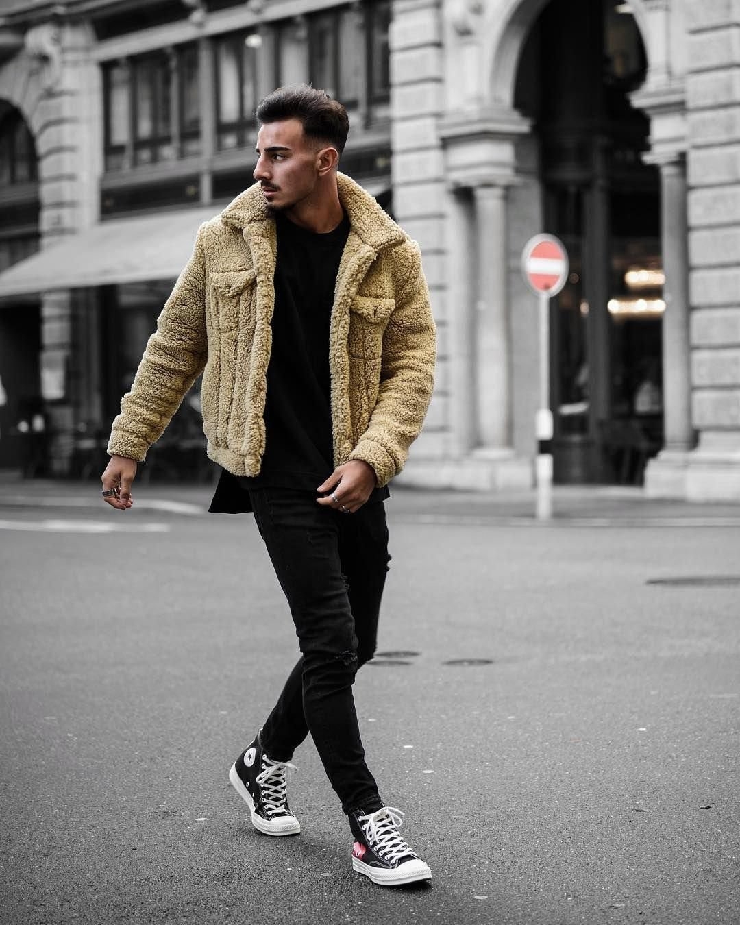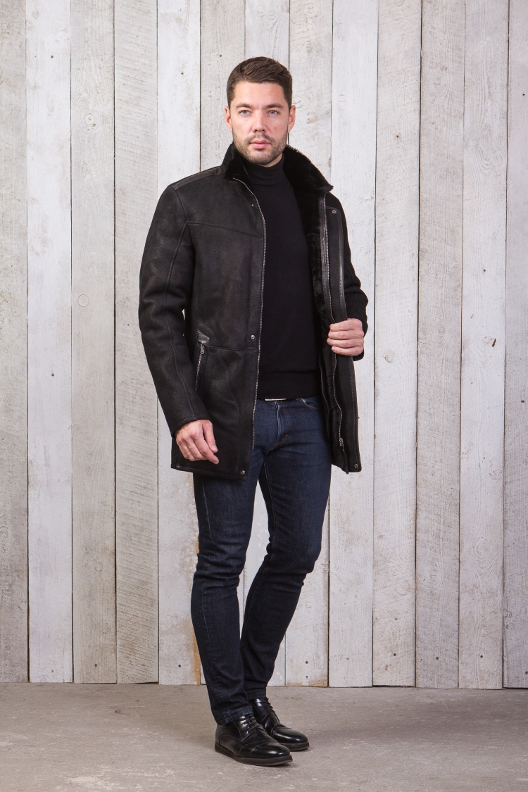 Мужской лук с черной дубленкой