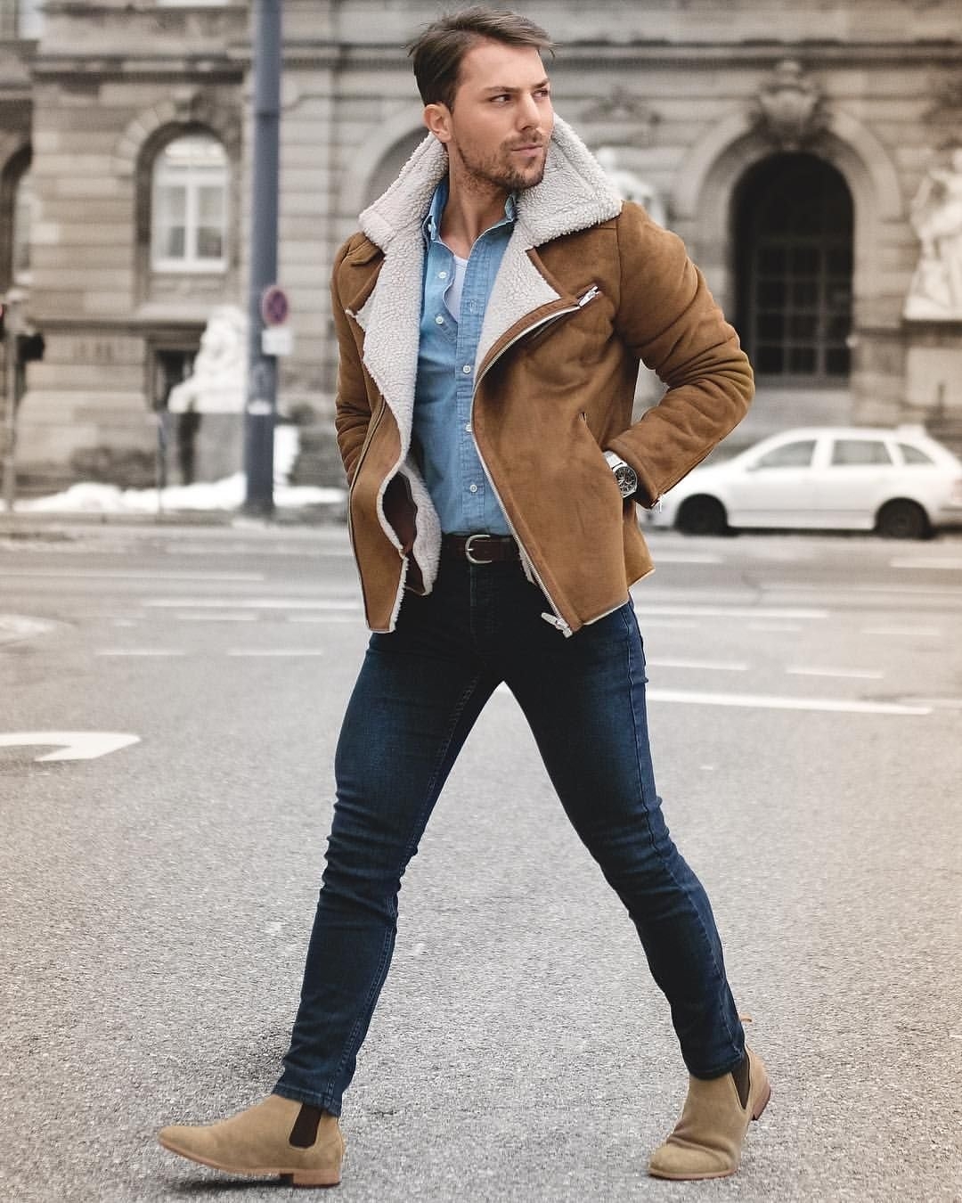 Мужской стиль с дубленкой