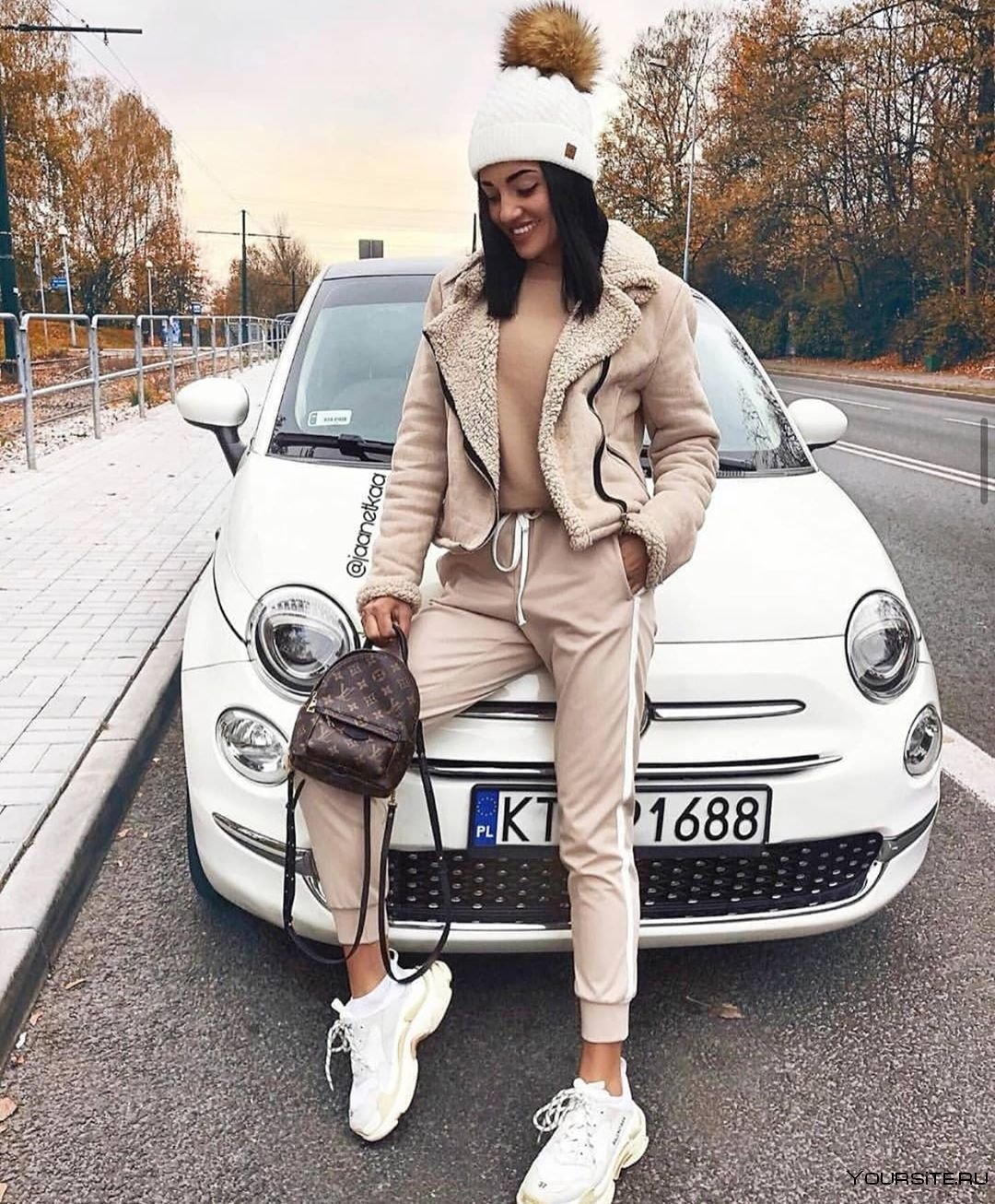 Дубленка со спортивным костюмом