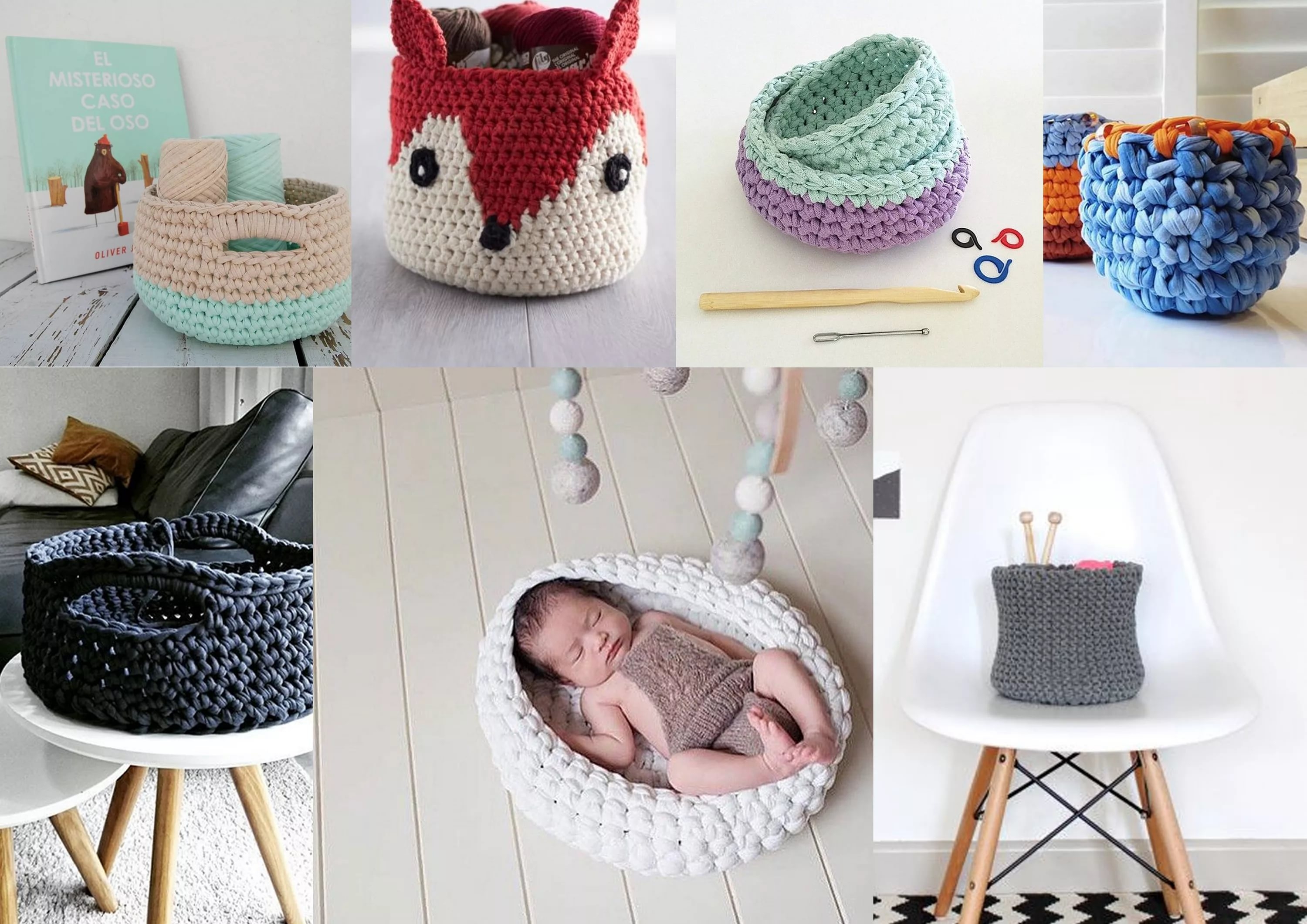 Вязаные корзины из ткани