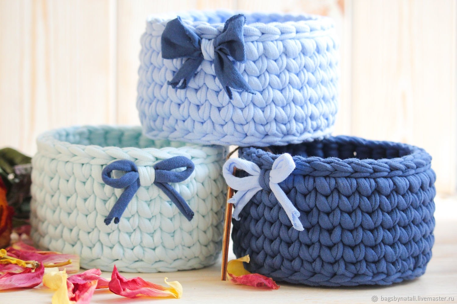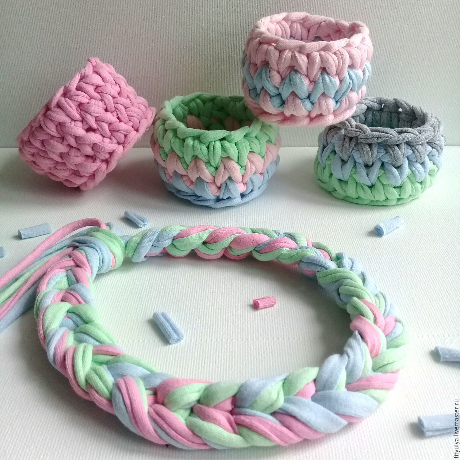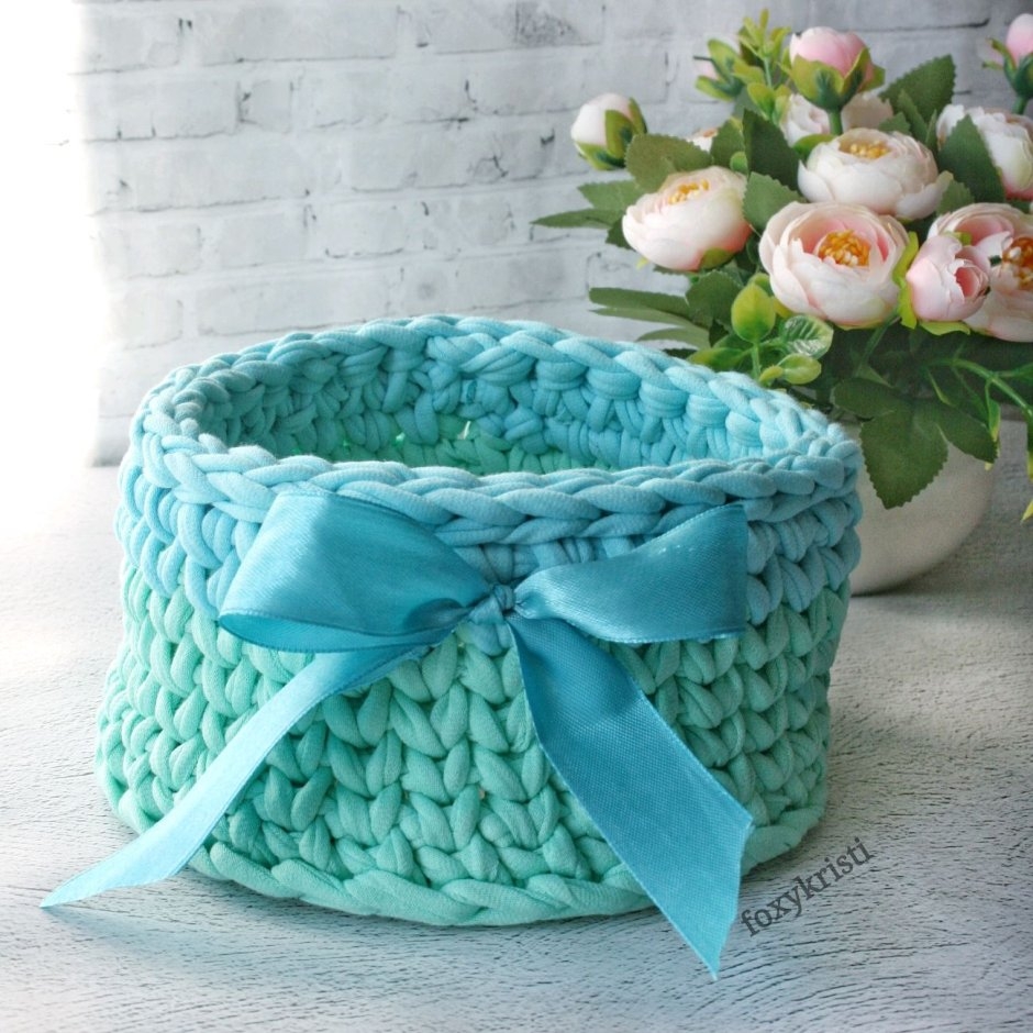 Вязаные корзинки из трикотажной пряжи