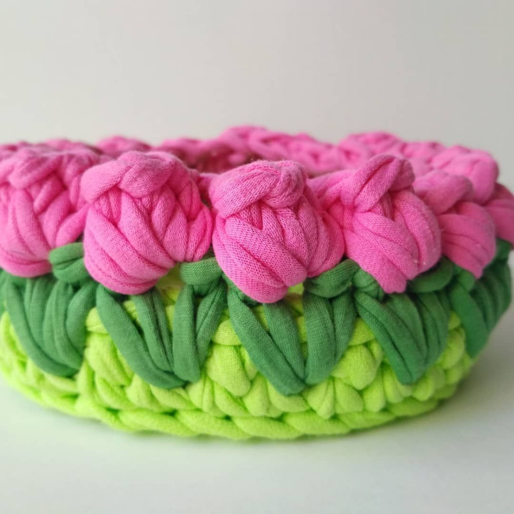 Корзинка из трикотажной пряжи тюльпанчики