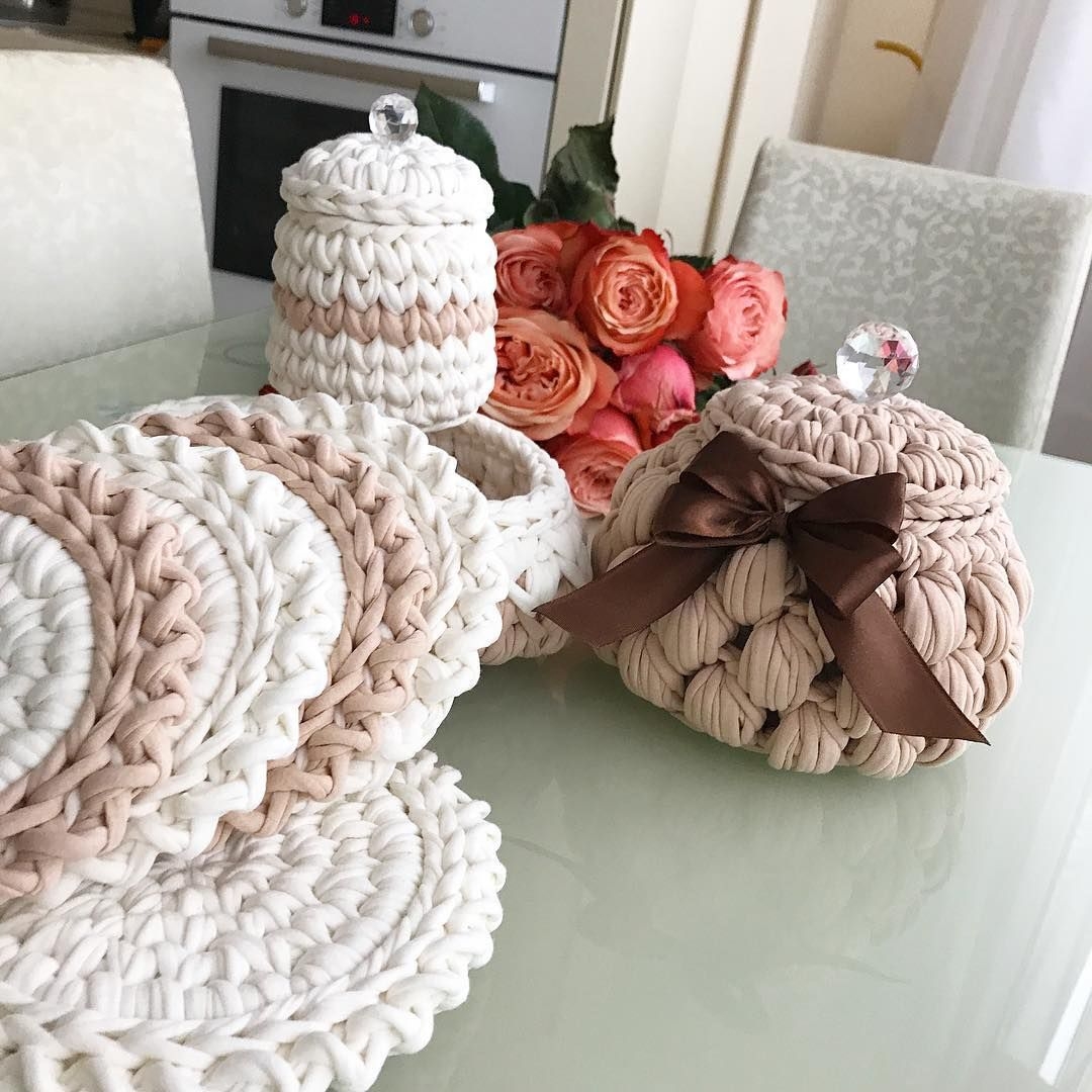 Вязаные корзины из трикотажной пряжи