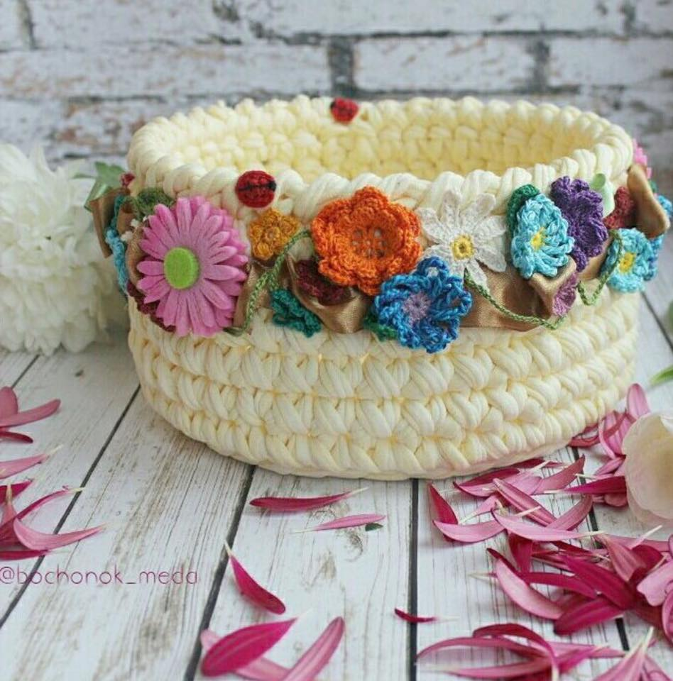 Красивые корзинки из трикотажной пряжи