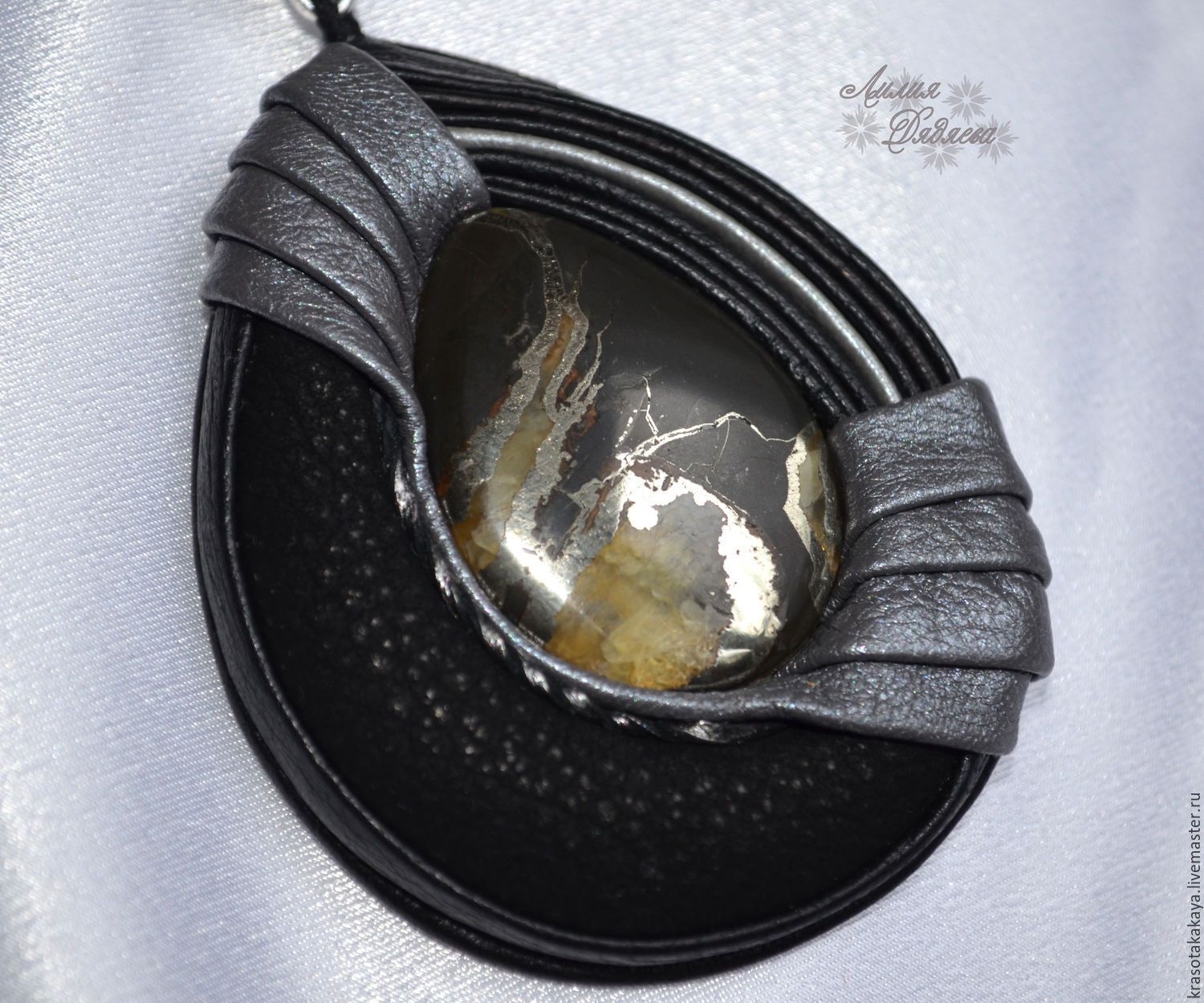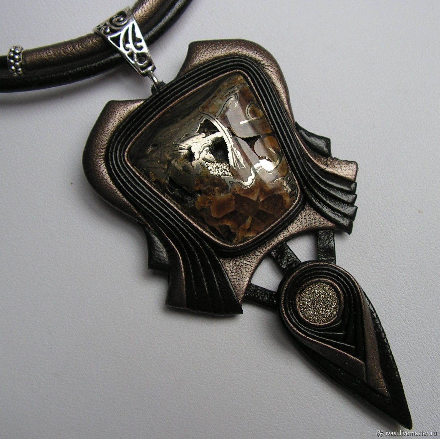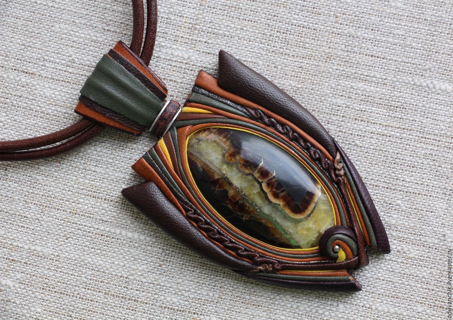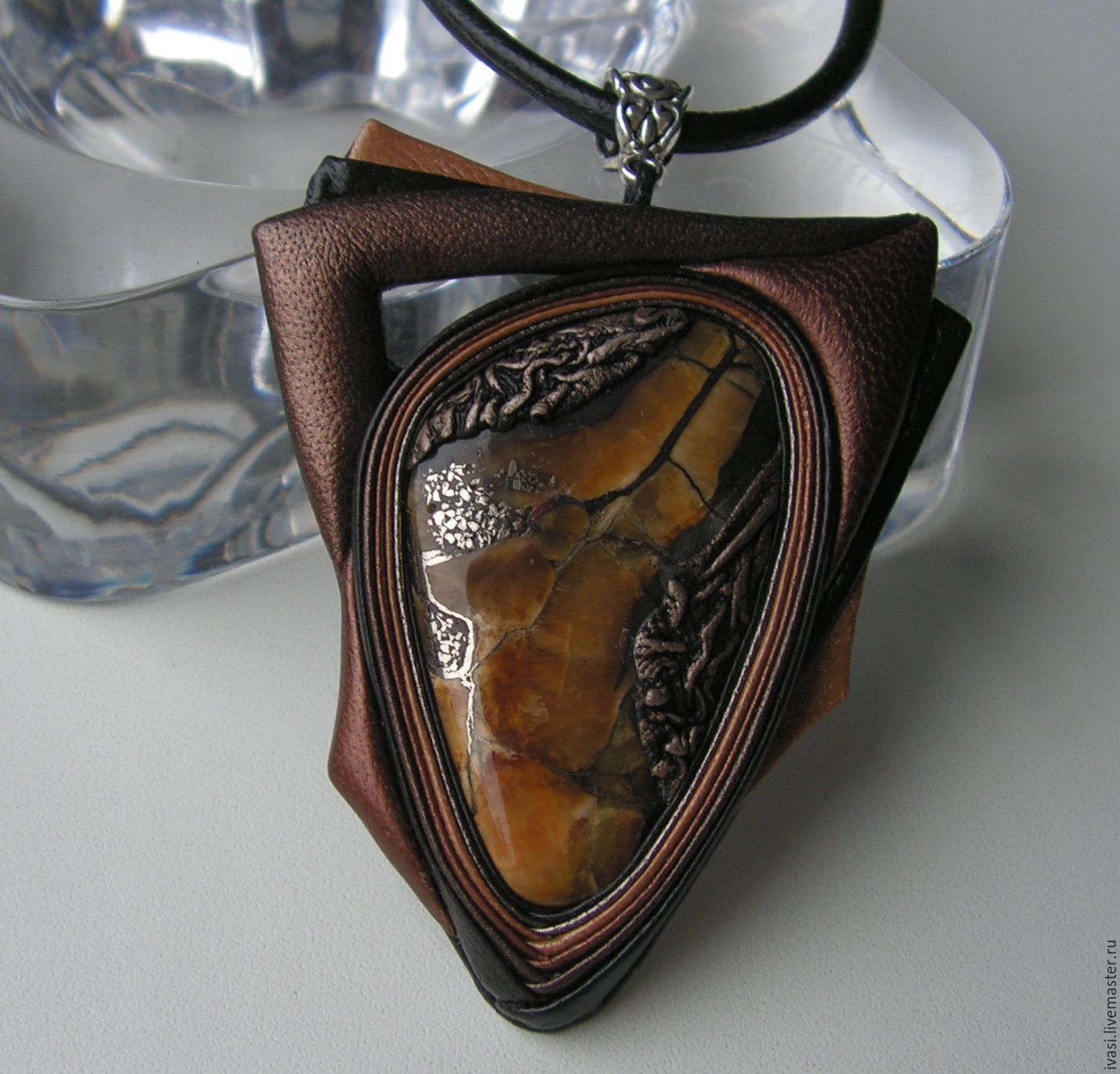 Кулон из кожи с кабошоном мастер-класс