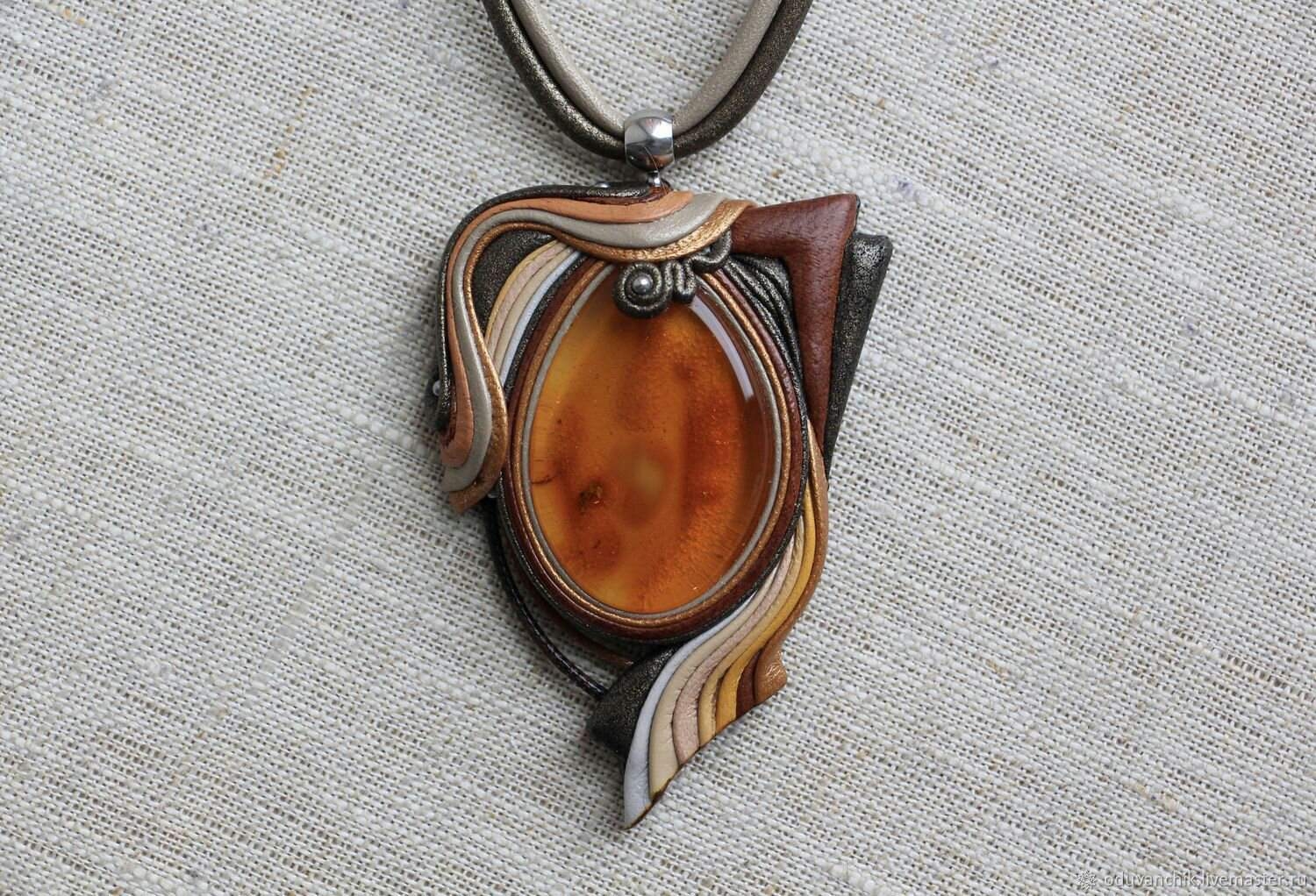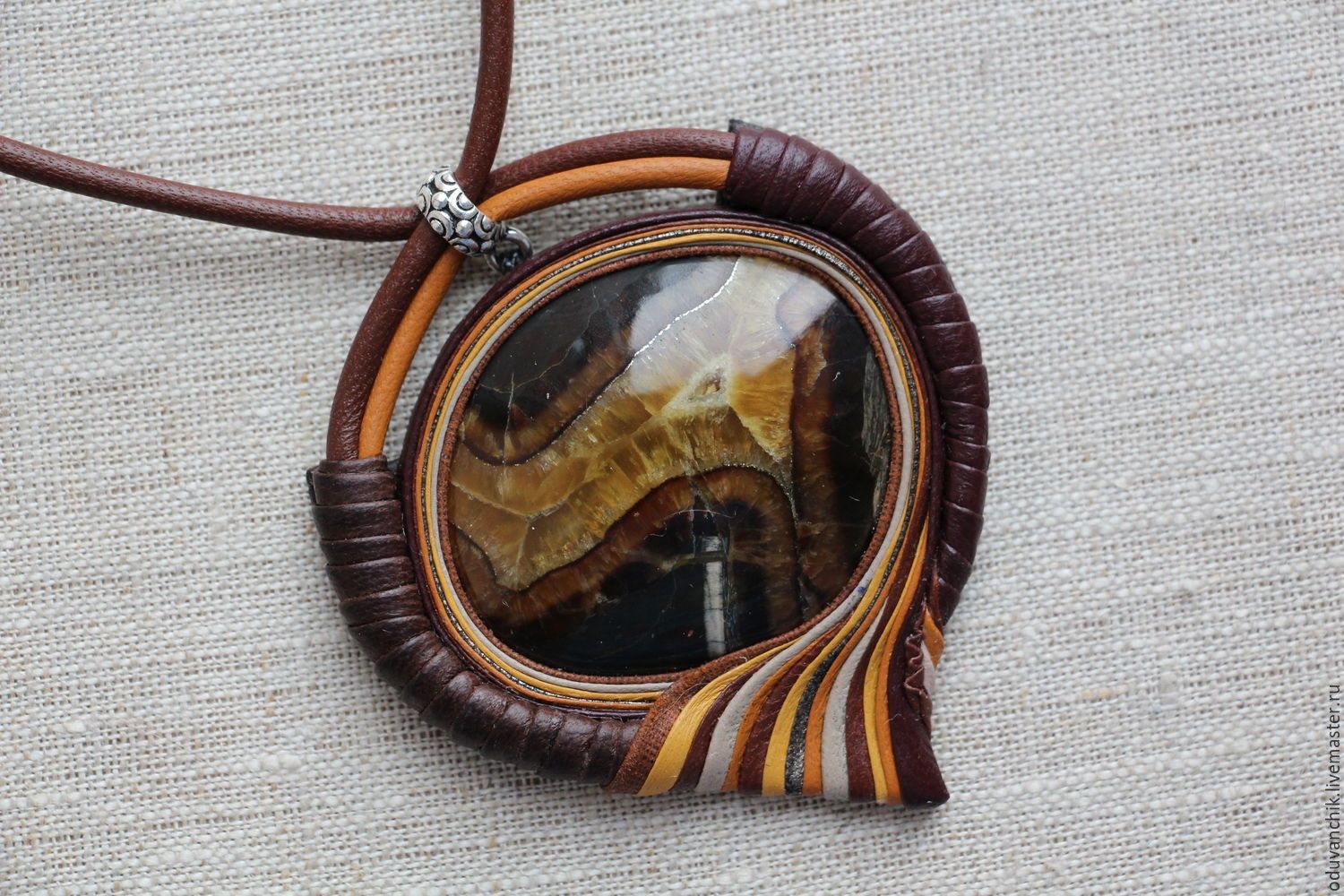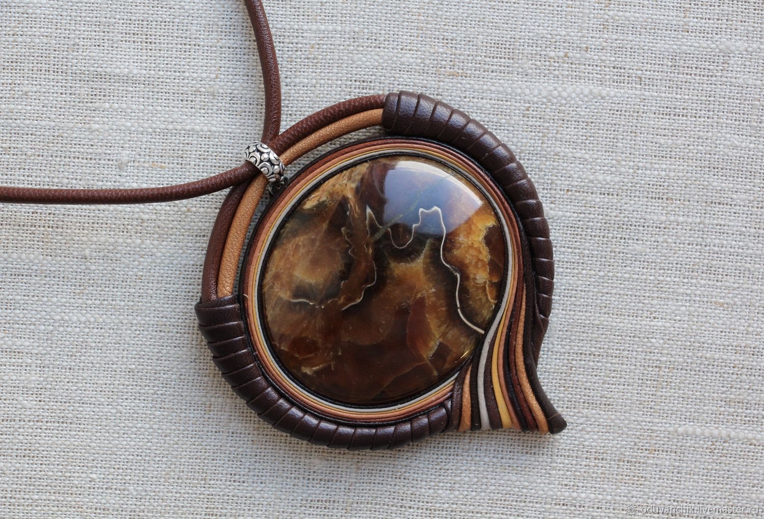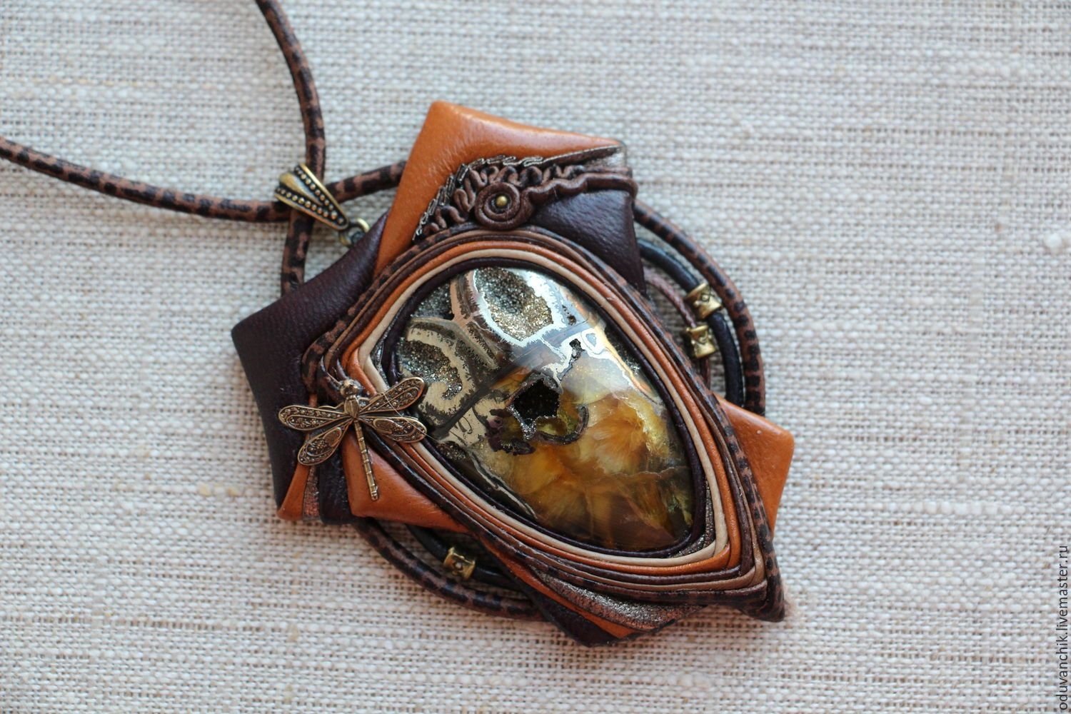 Кулон из кожи с кабошоном мастер-класс