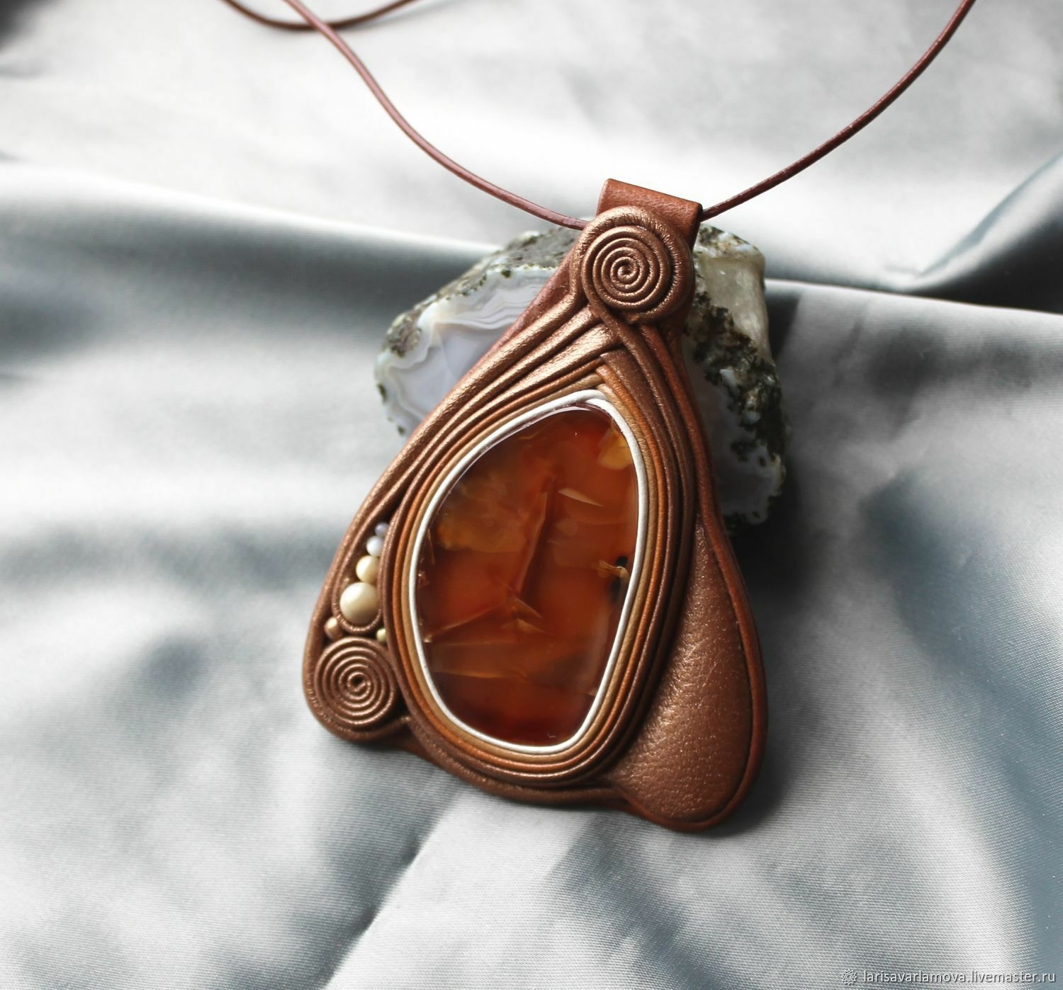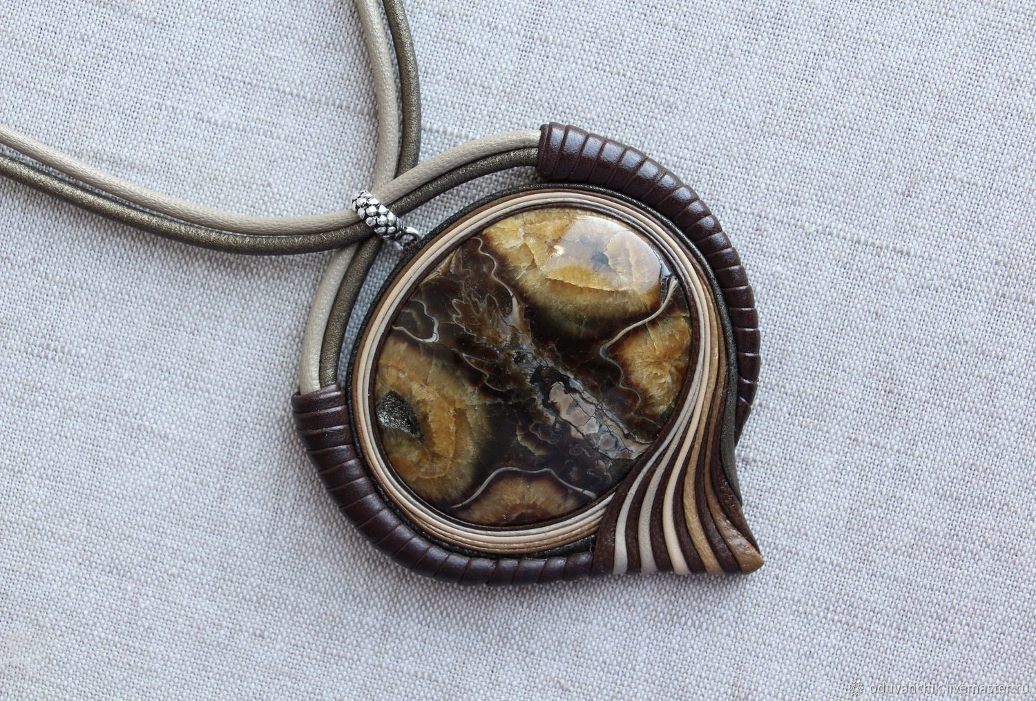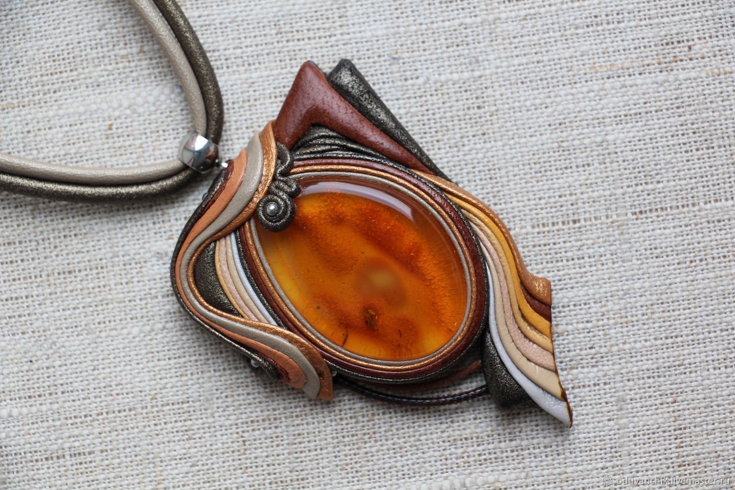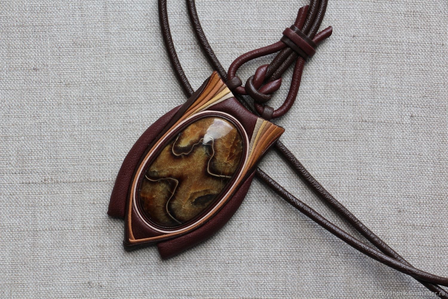 Кулон из кожи с кабошоном мастер-класс