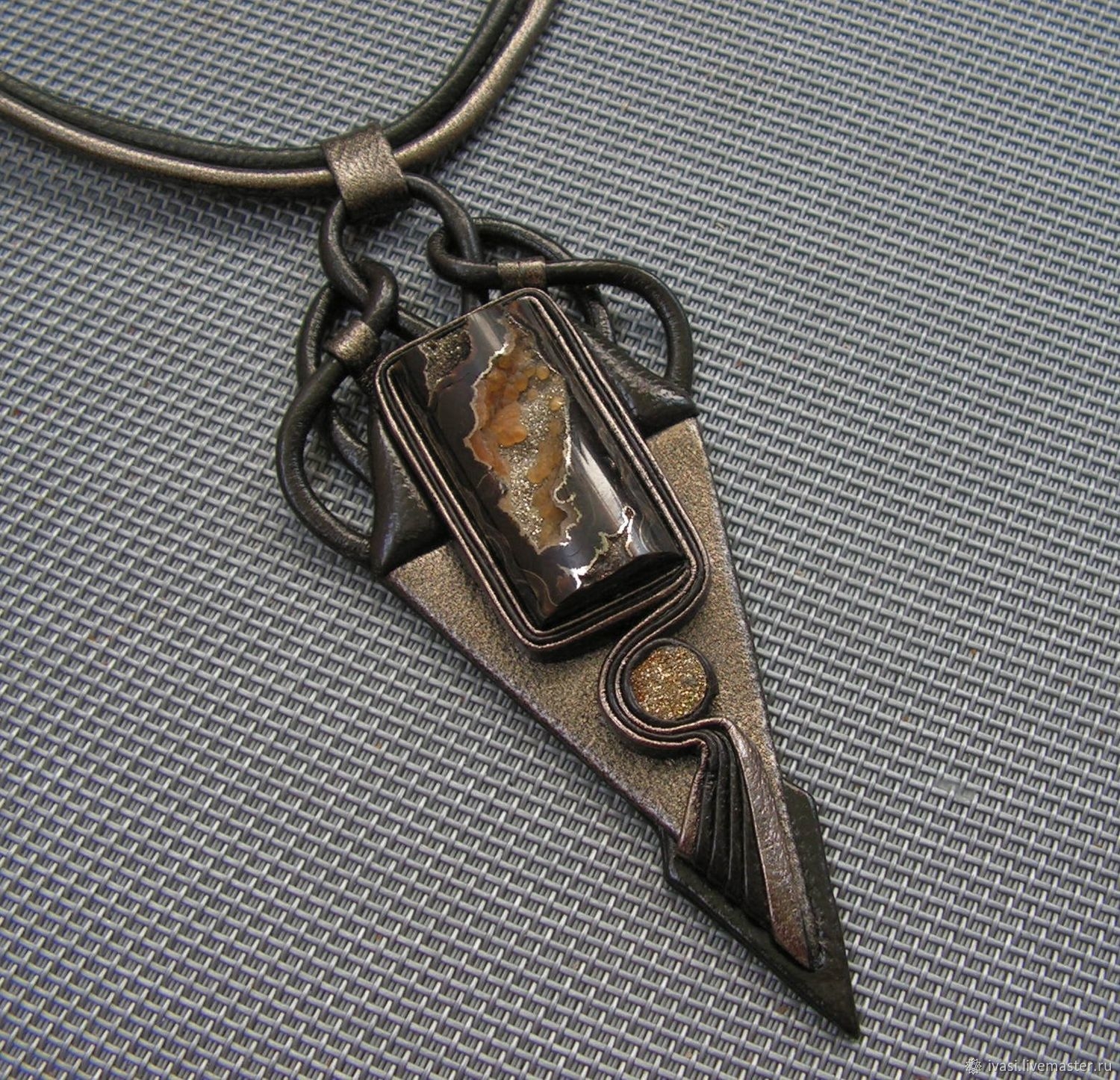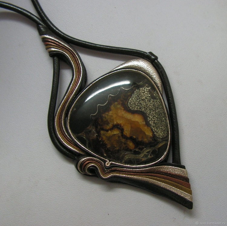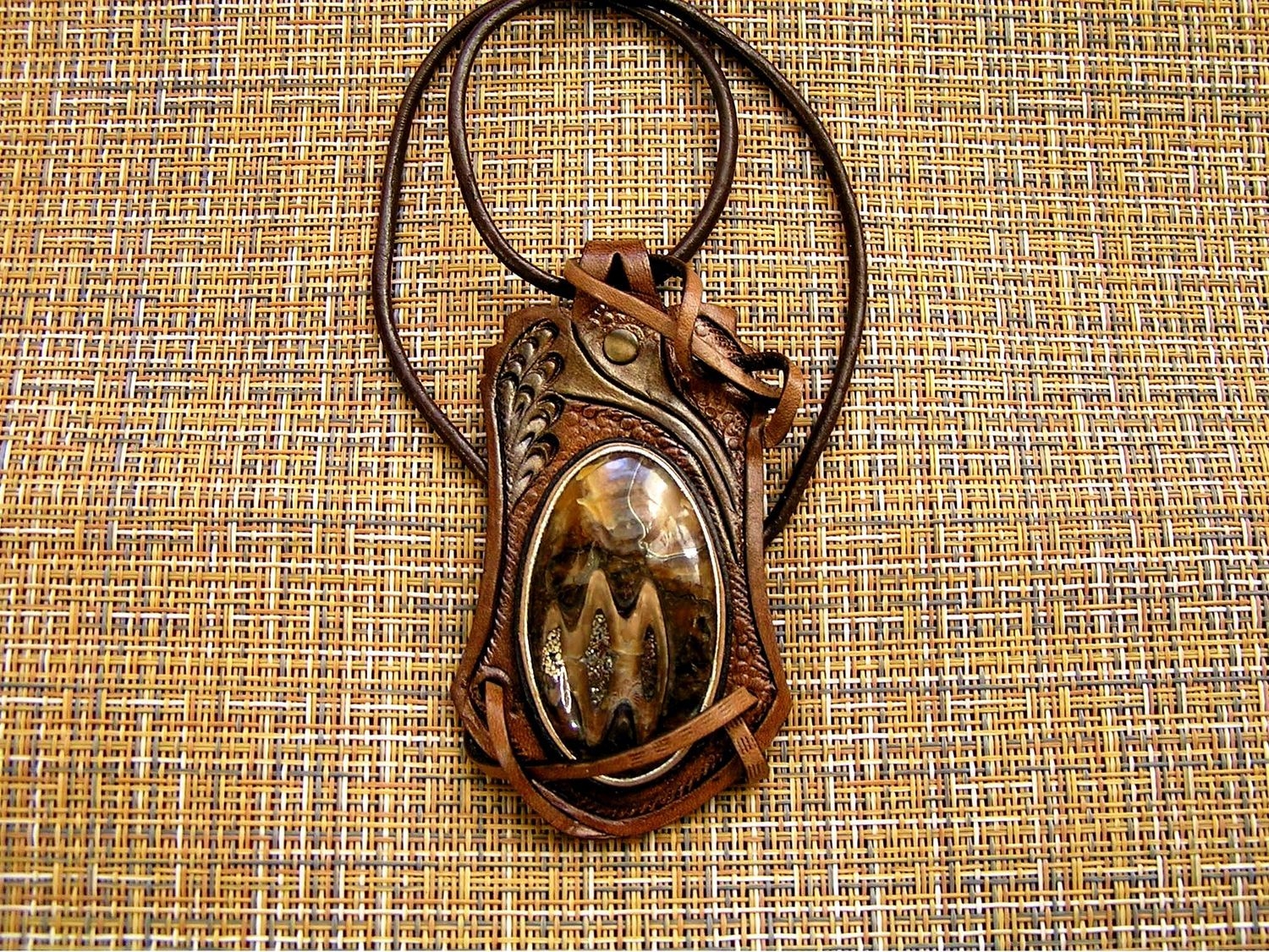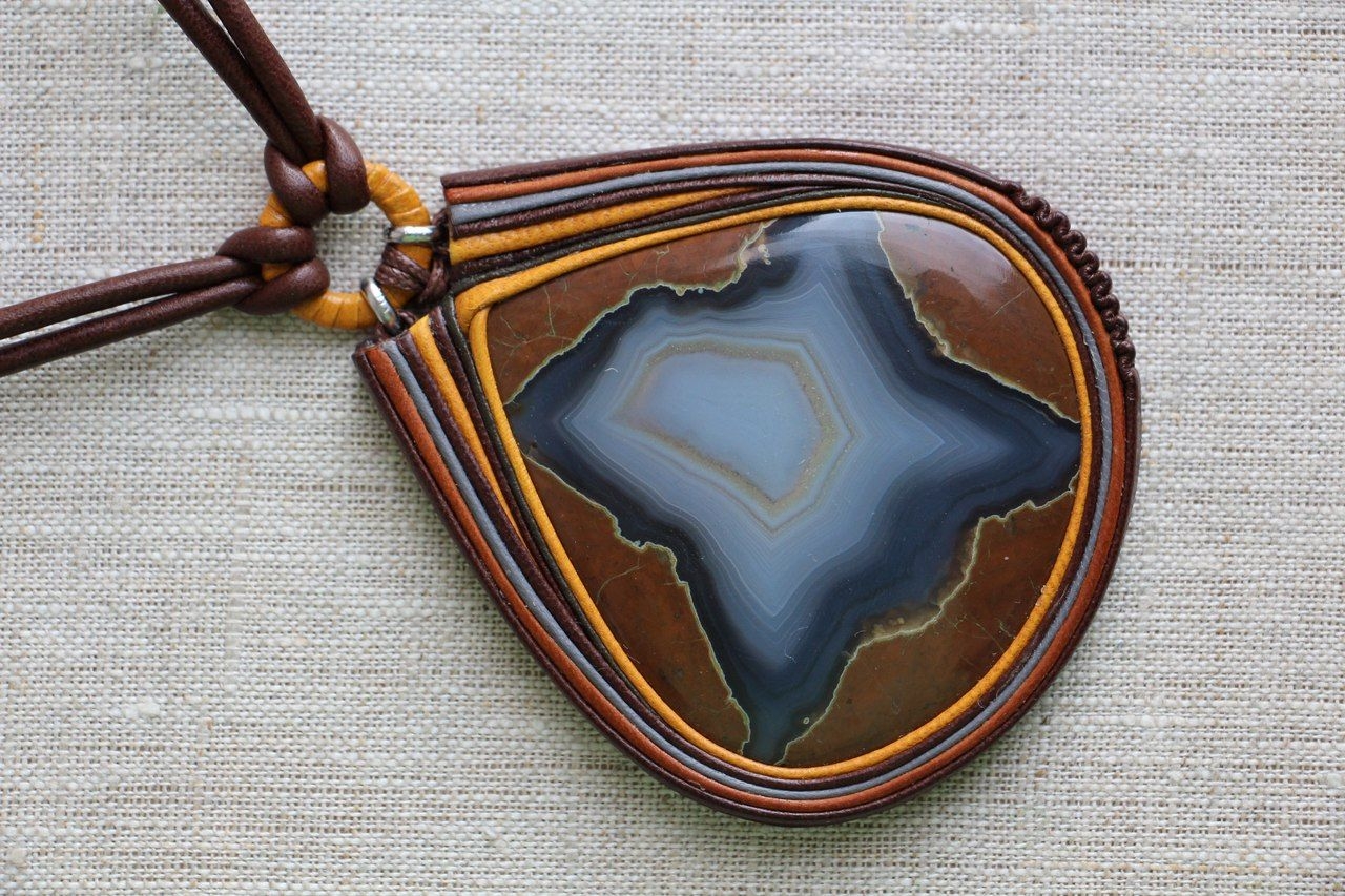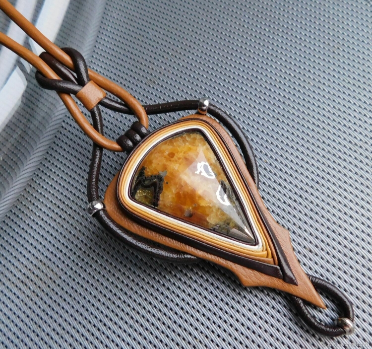 Кулон из кожи и камня