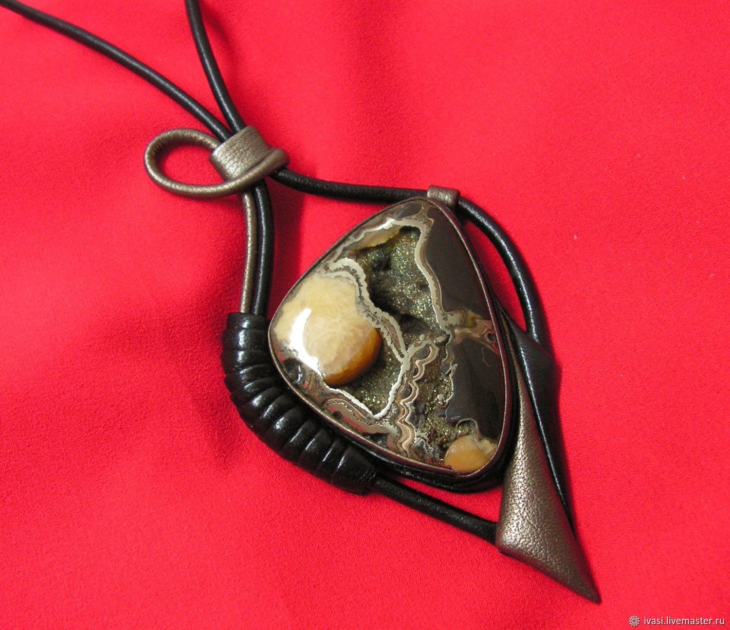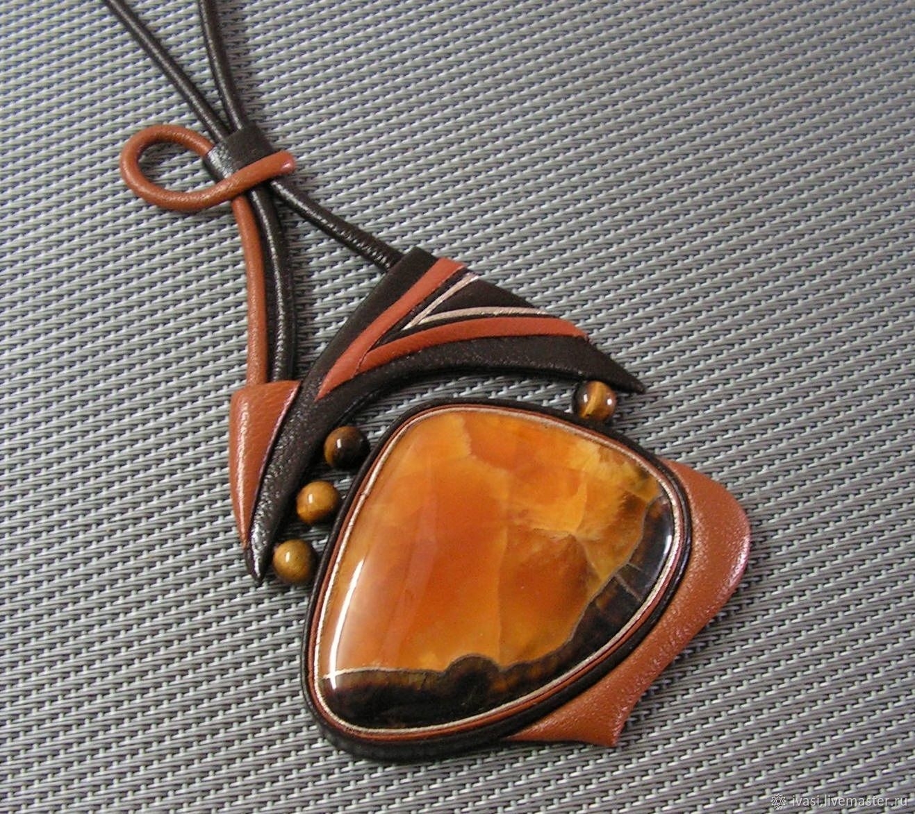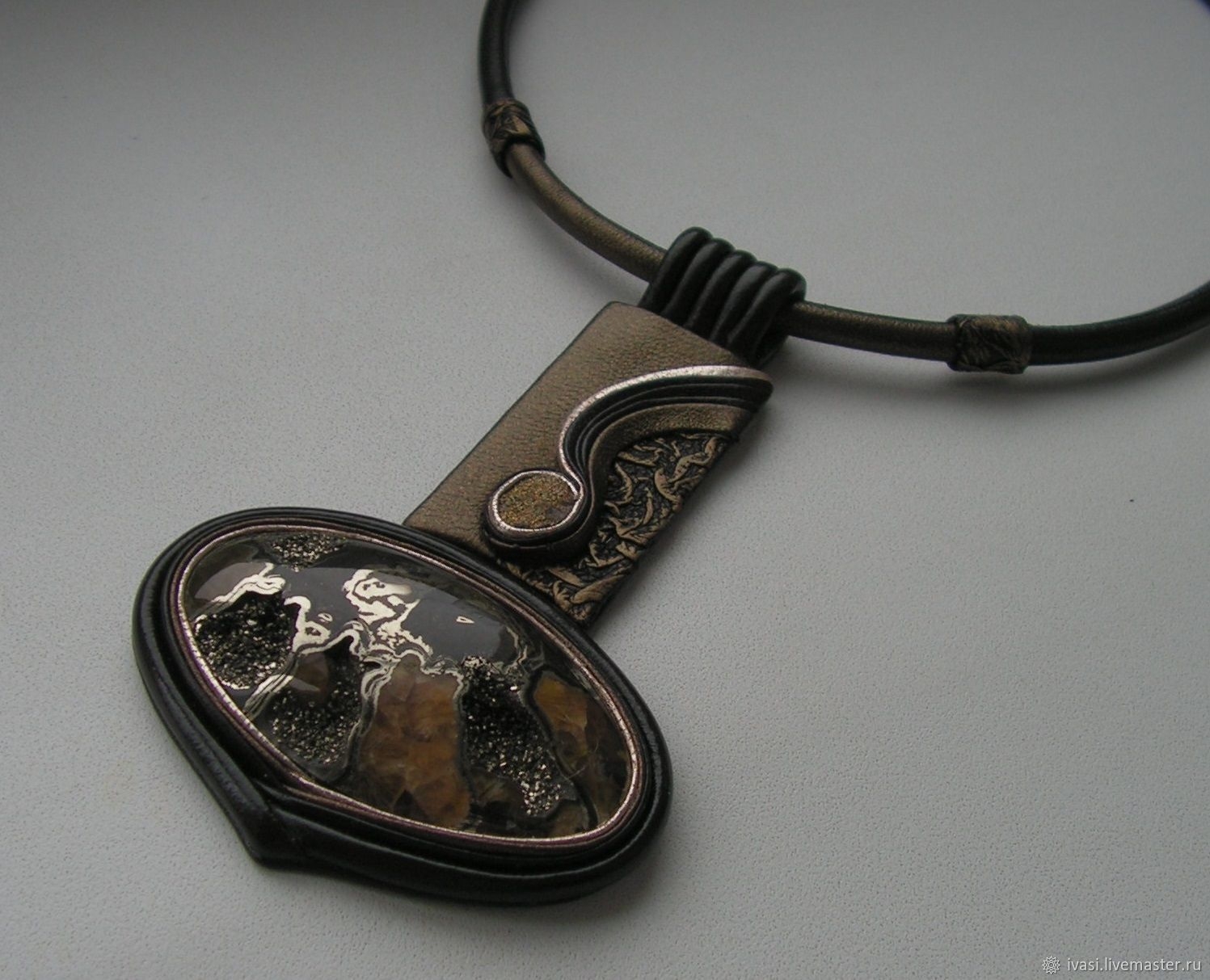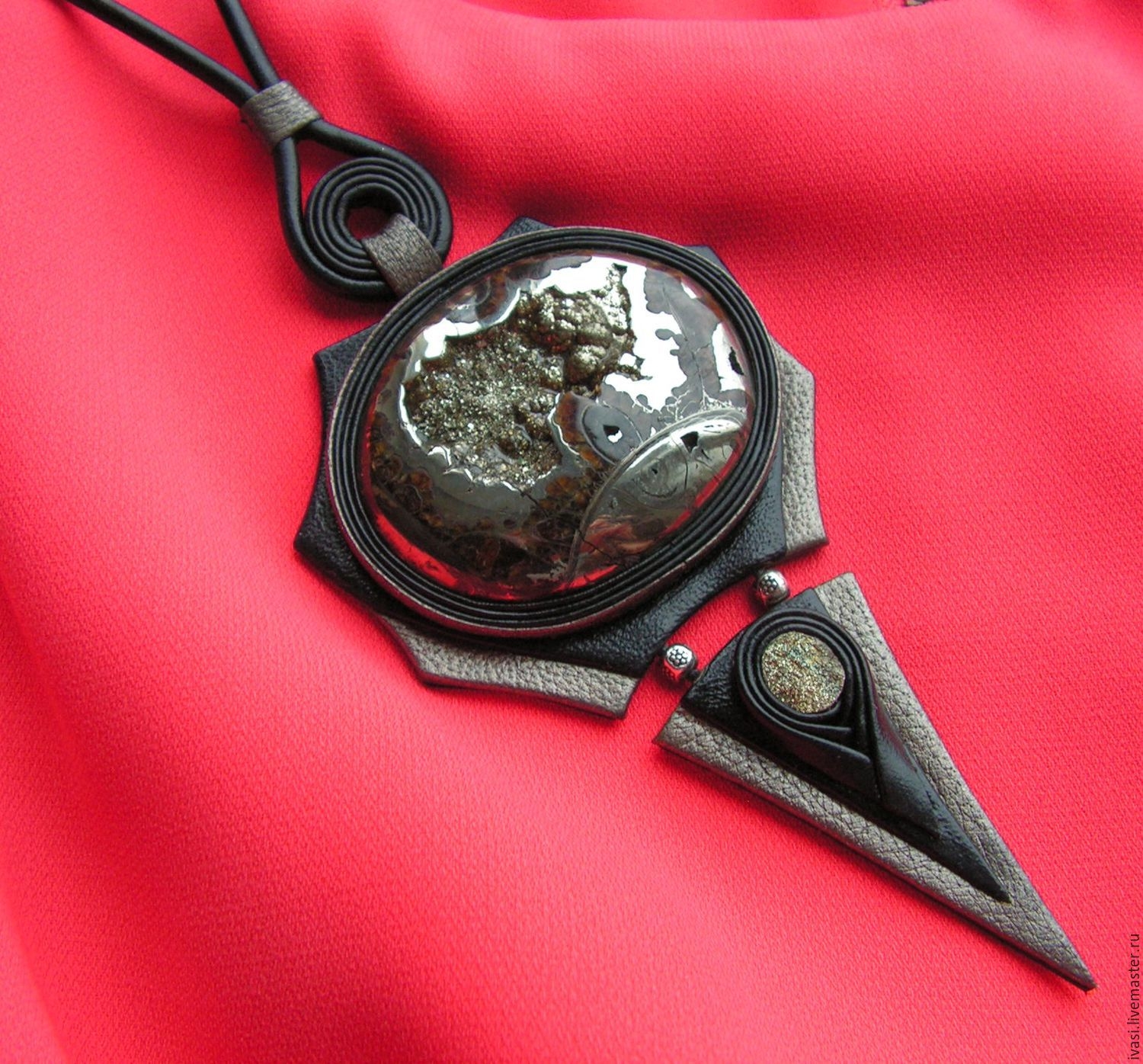 Кулон из кожи и камня
