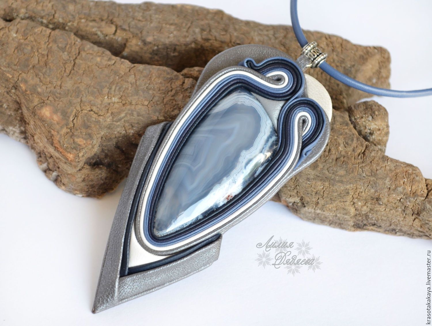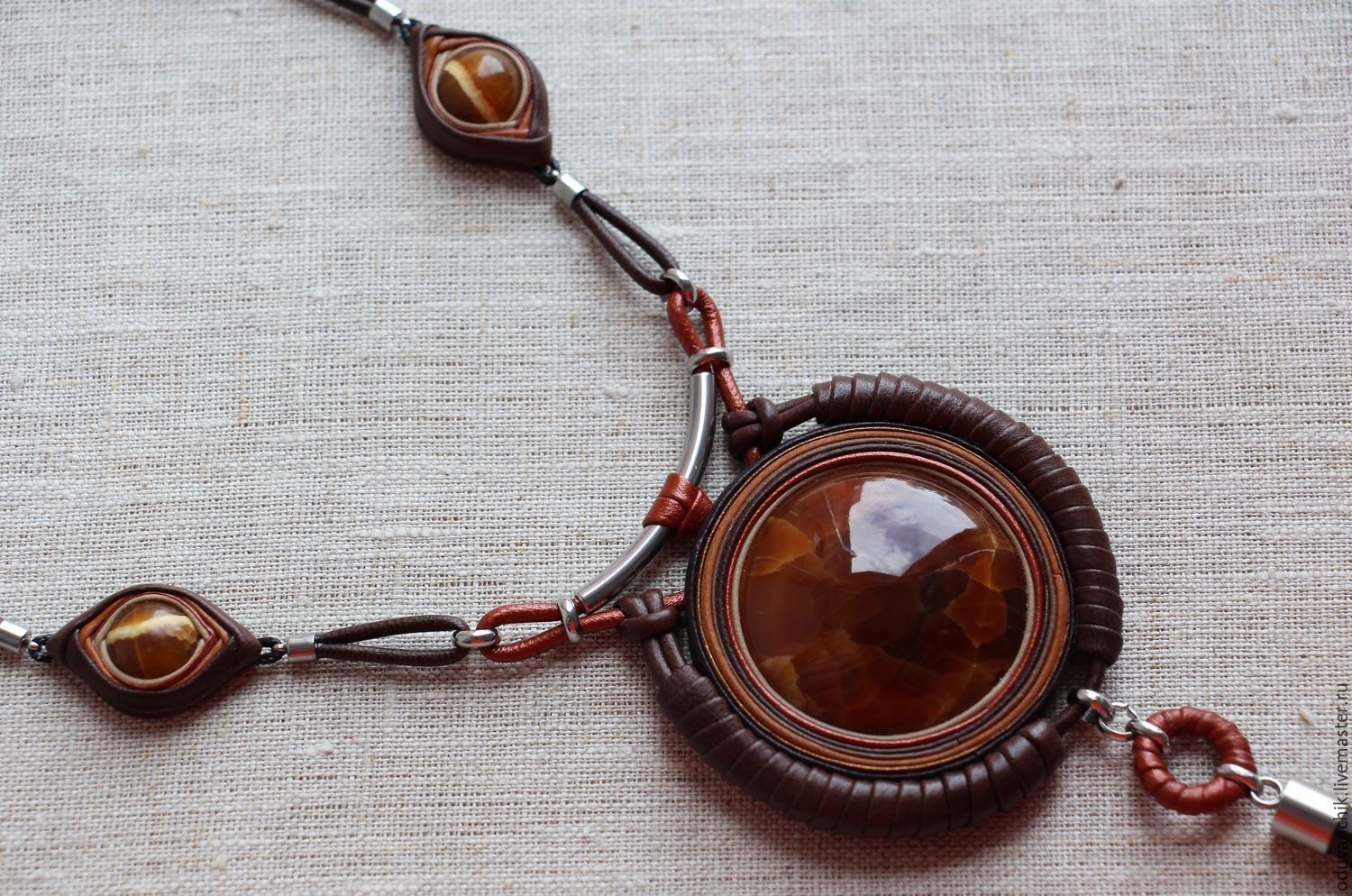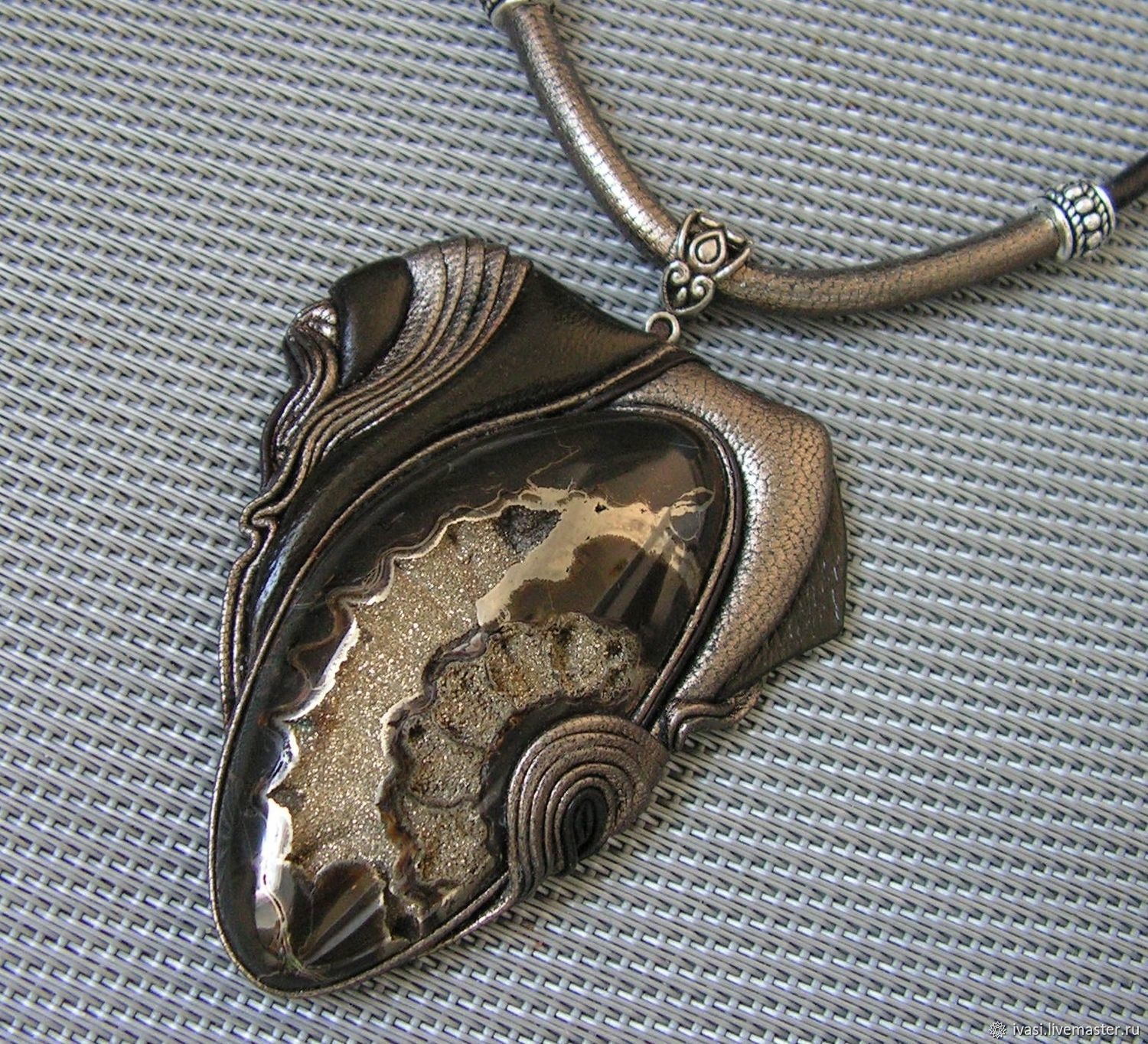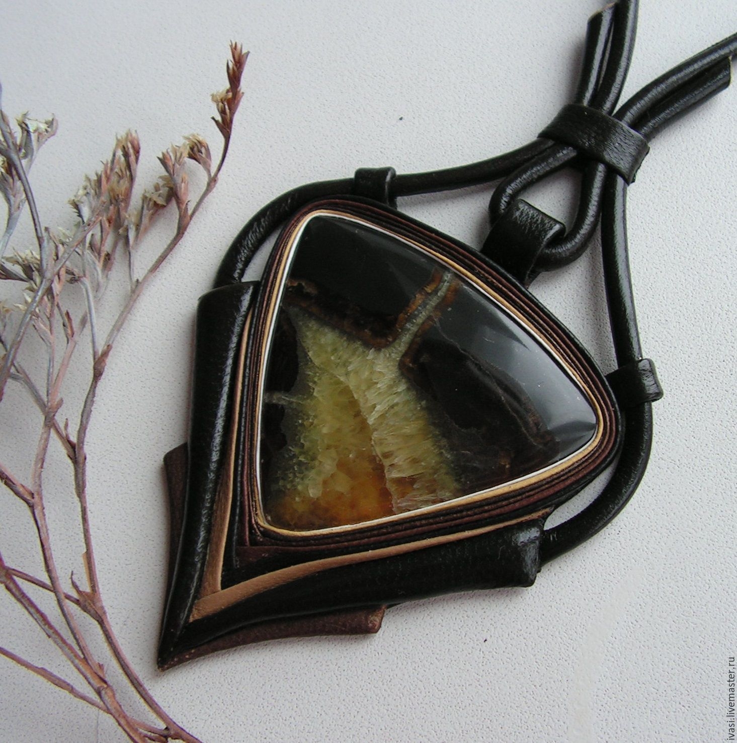 Кулон из кожи и камня