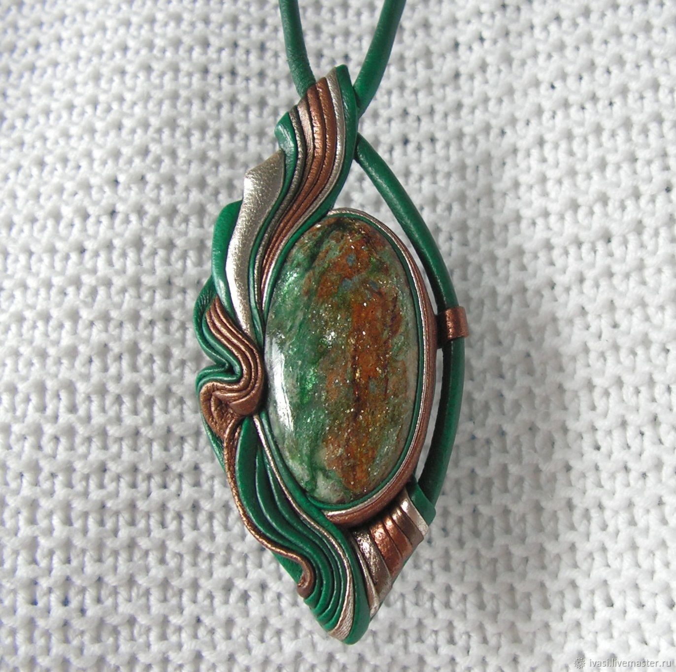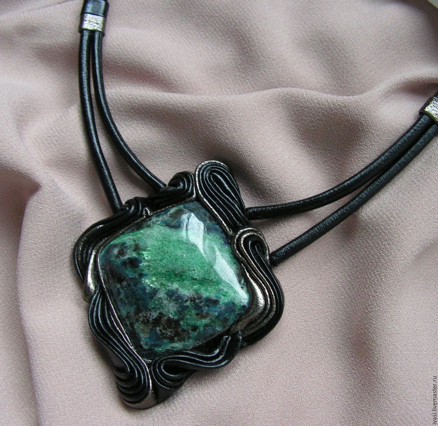 Кулоны из кожи с зеленым камнем