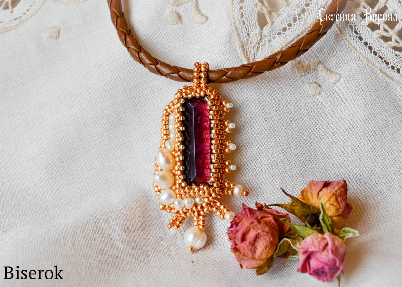 Подвеска из жемчужного кабошона и бисера