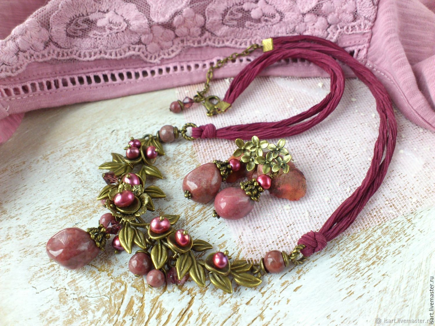 Колье из родонита