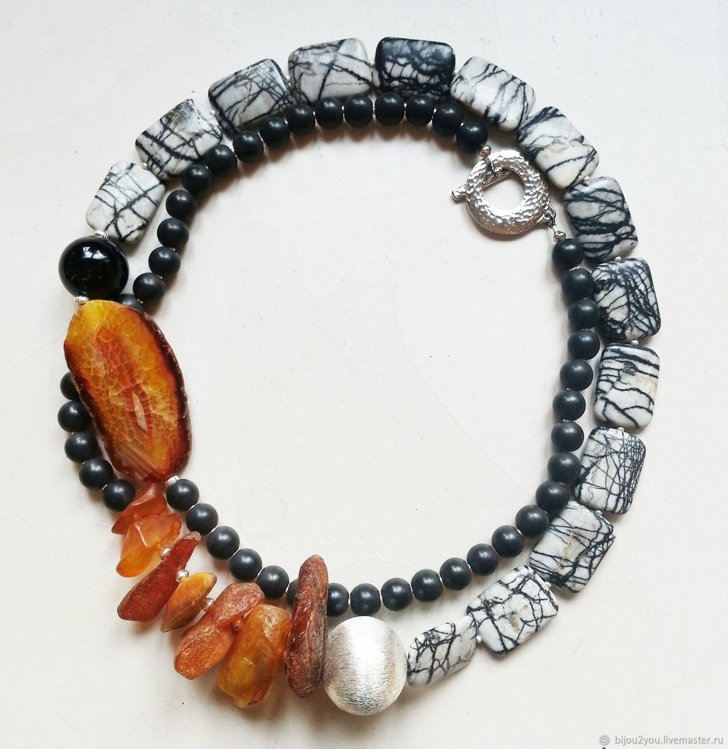 Браслет из яшмы и янтаря