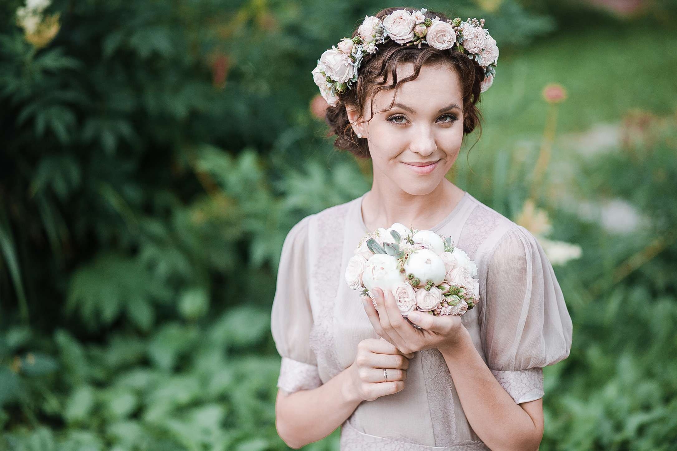 Свадебные причёски с распущенными волосами и венком