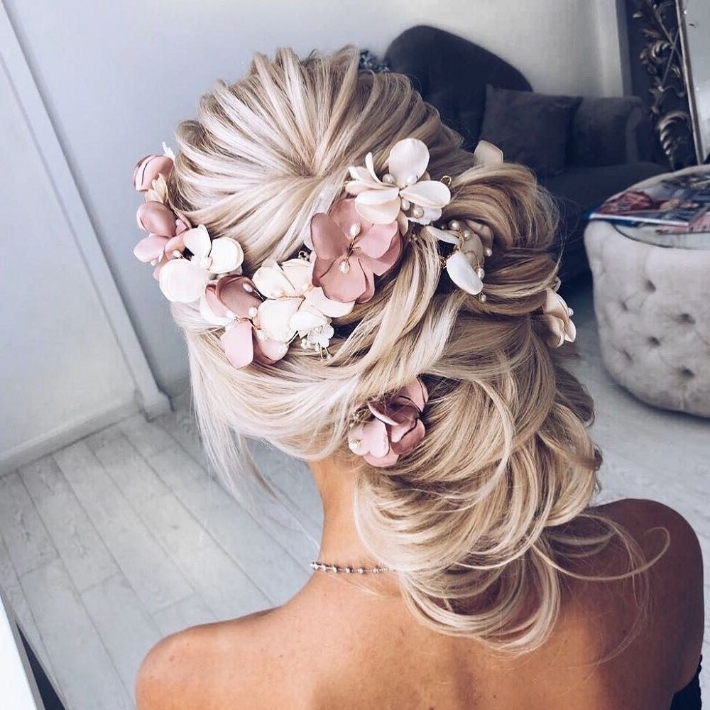 Высокая прическа с цветами
