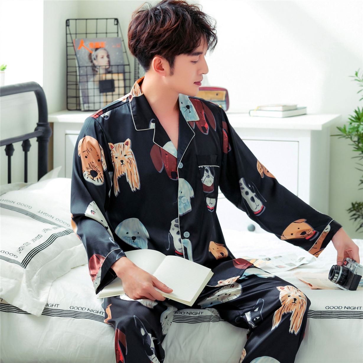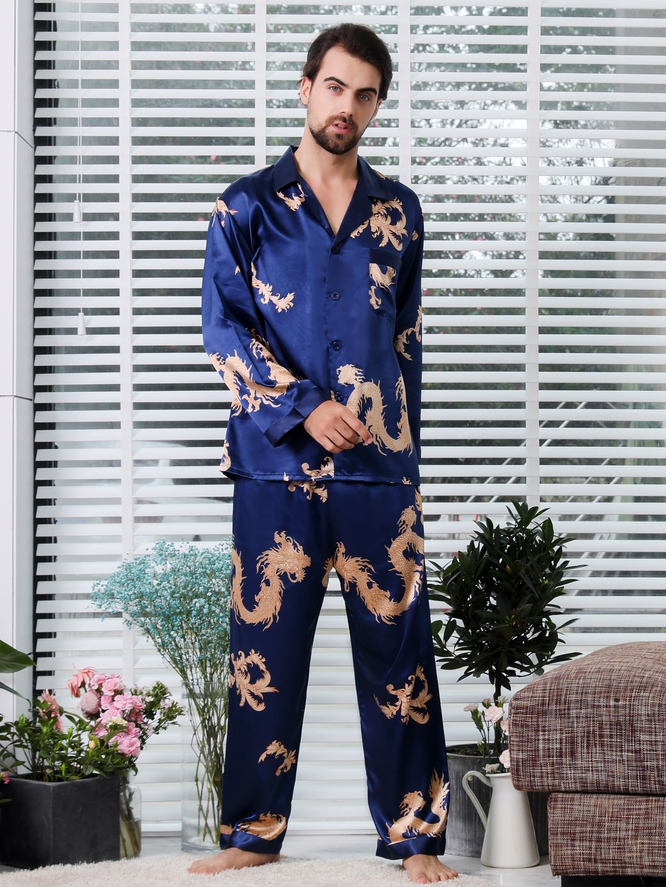 Мужчина в шелковой пижаме