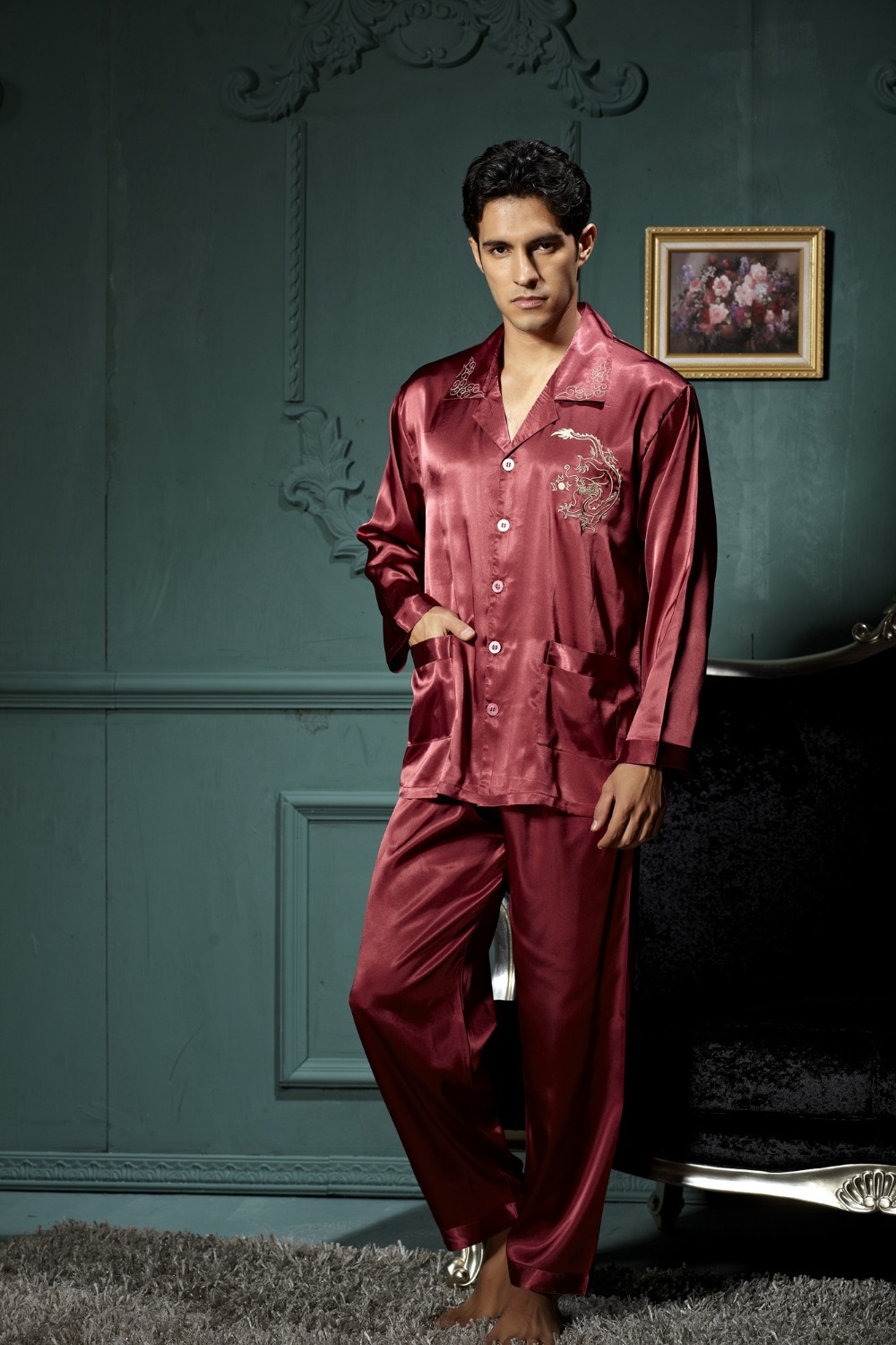 Китайские шелковые пижамы мужские