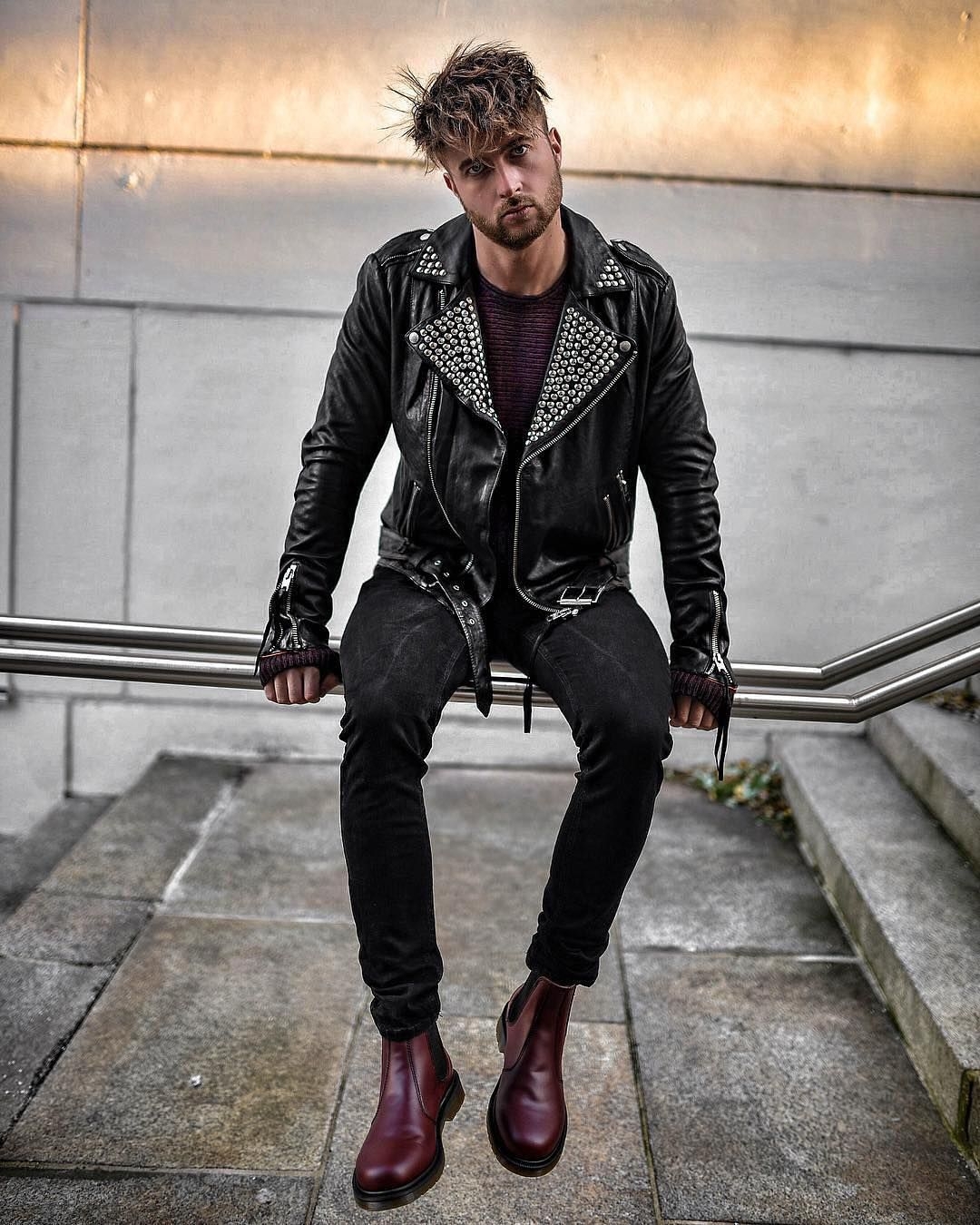 Goth outfit Грандж чёрная корейская одежда мужская
