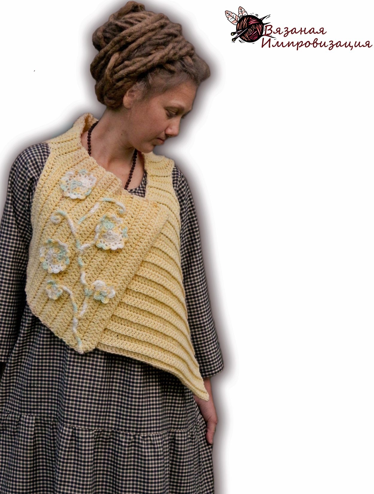 Ажурный жилет на платье бохо
