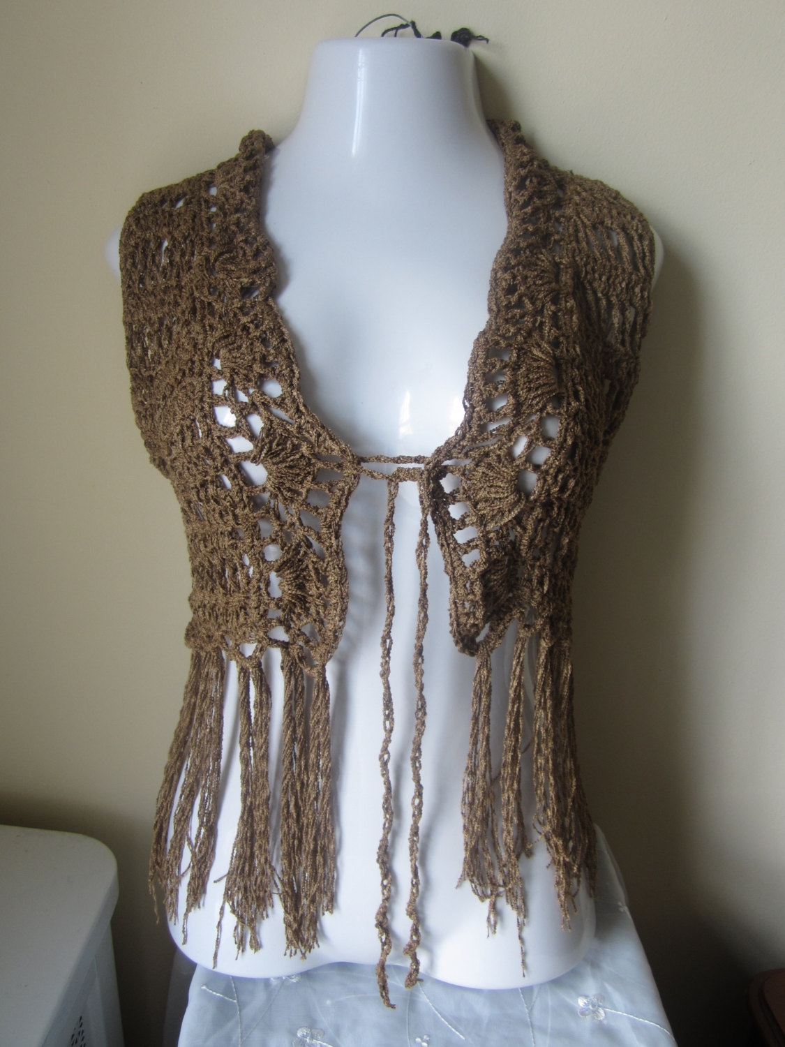 Ажурный жилет с бахромой