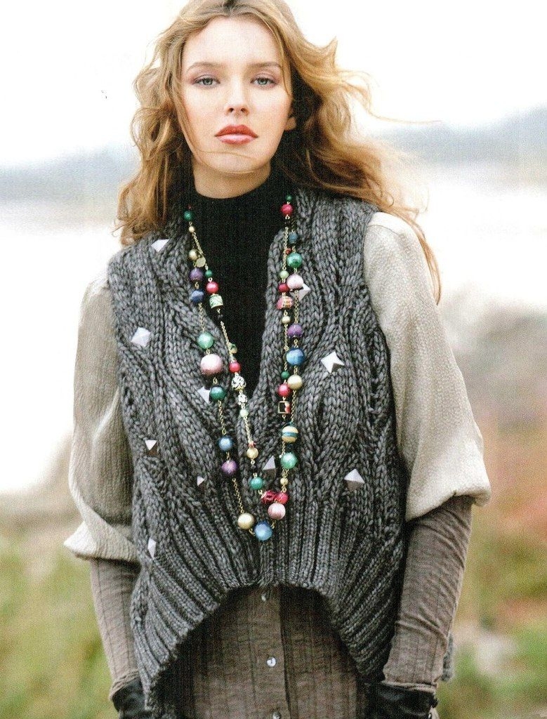 Жилет спицами для женщин в стиле бохо