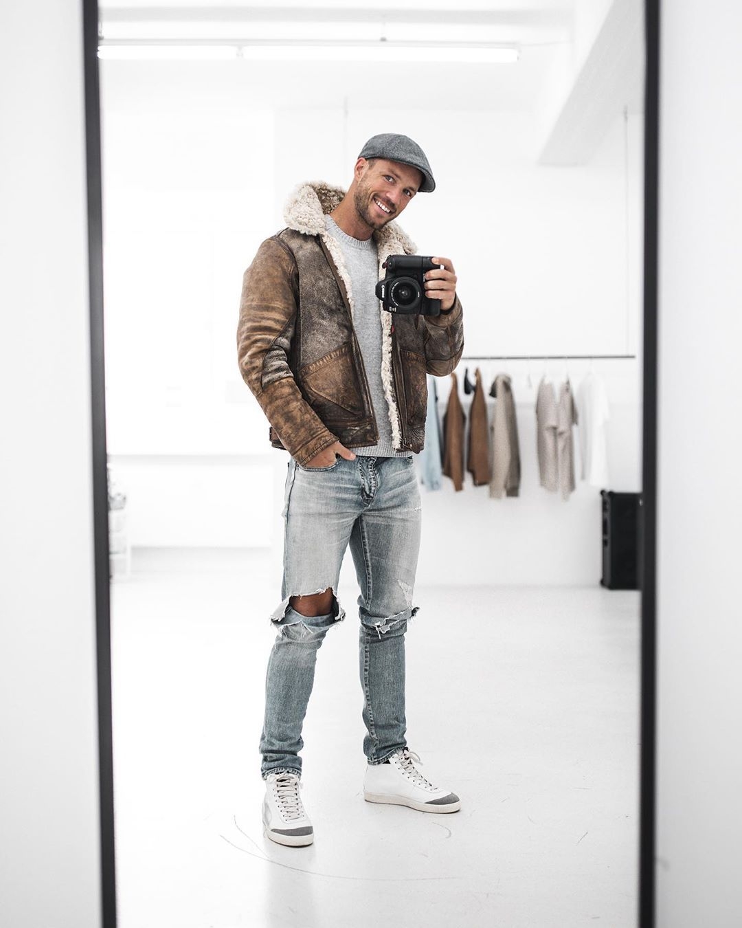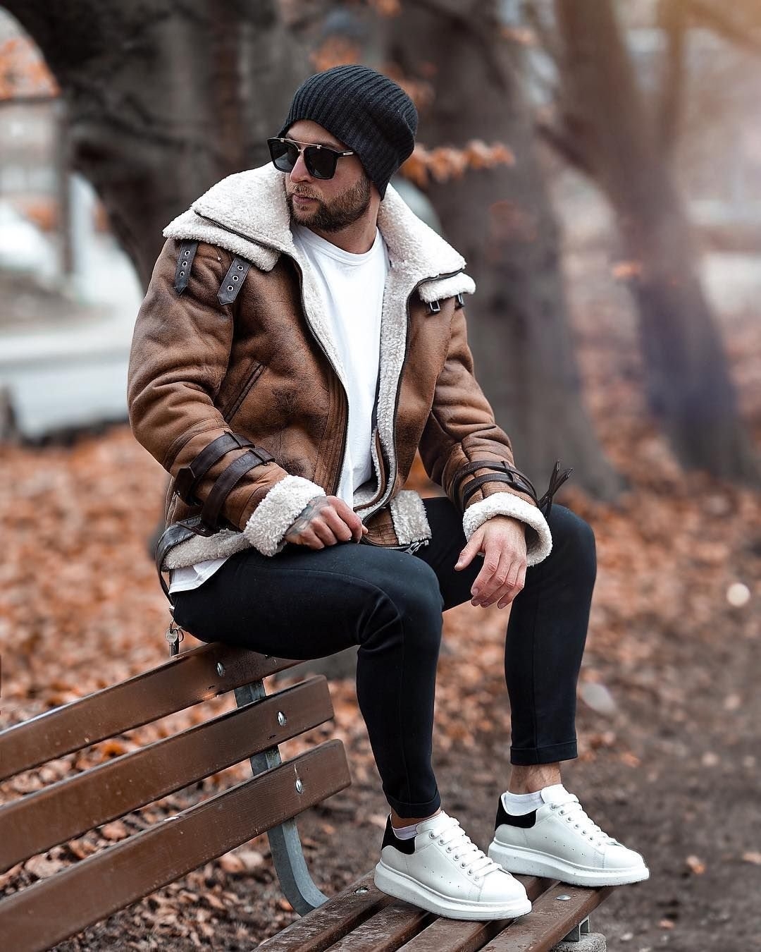Мужской лук с дубленкой