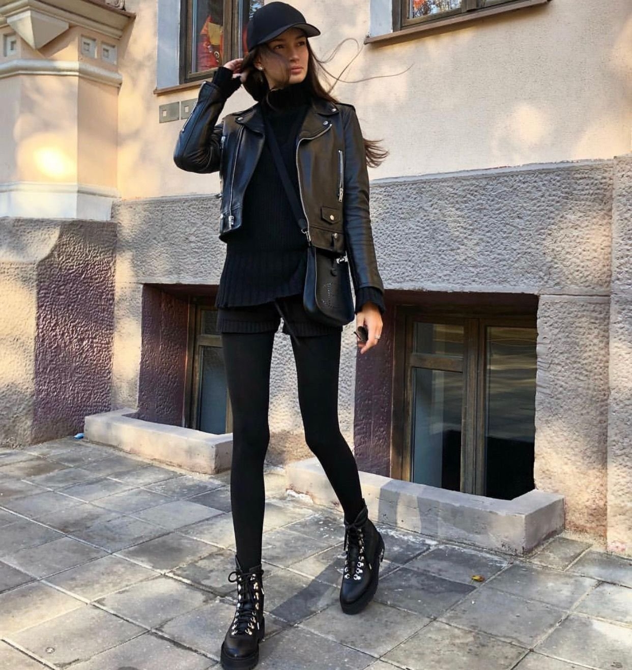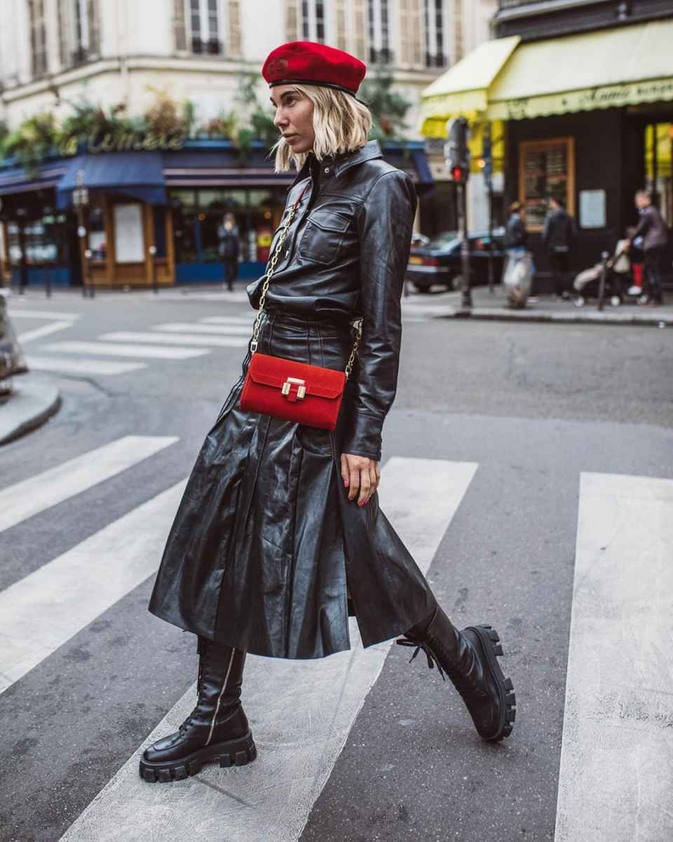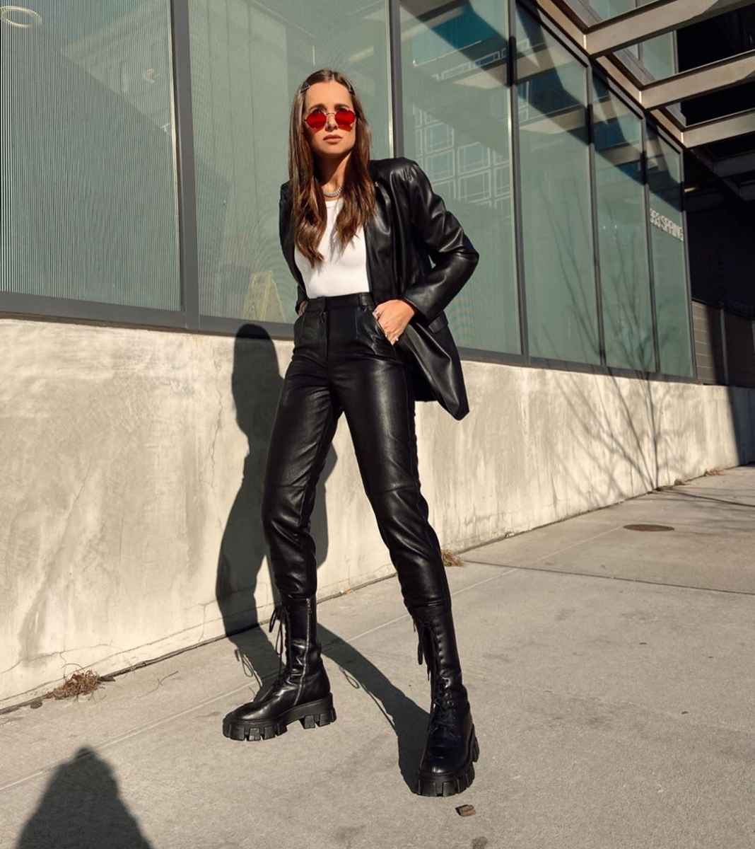 Кожаные брюки с ботинками