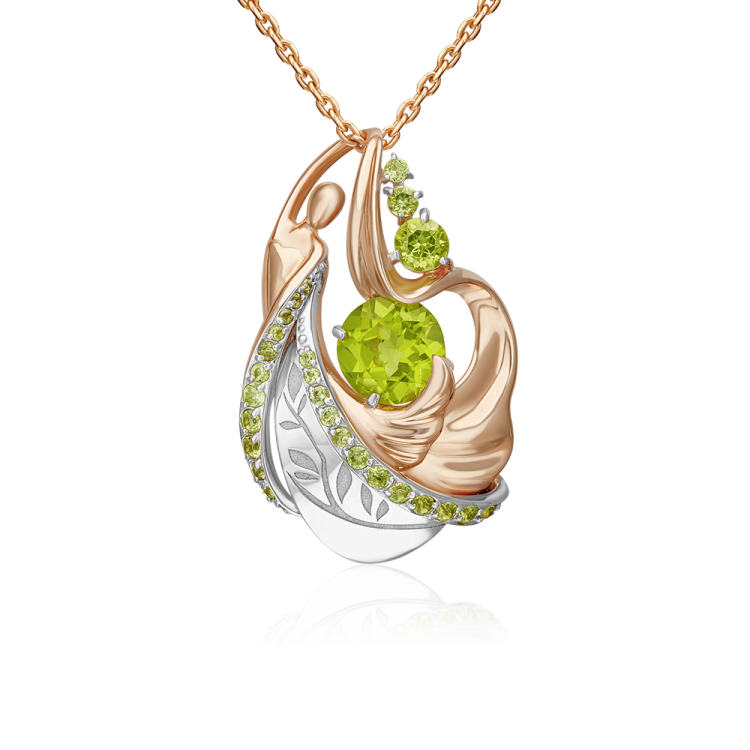 92030624 Подвеска из серебра с хризолитом и фианитом