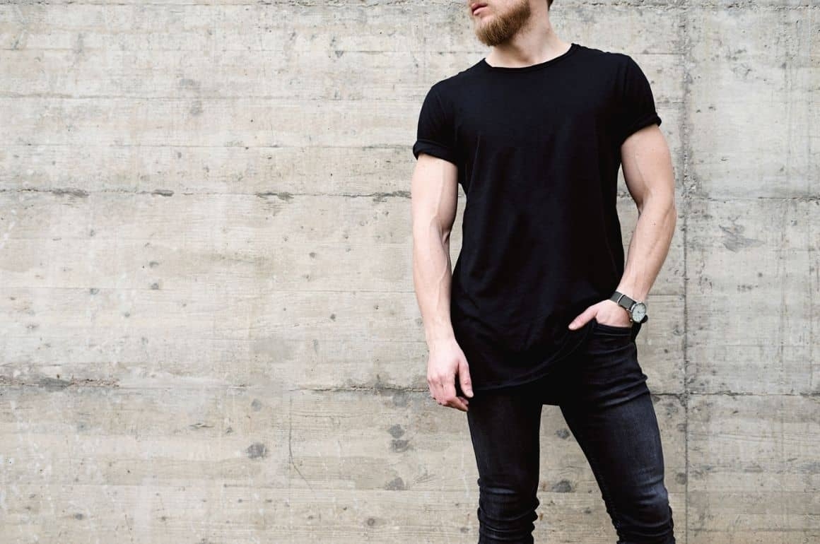Черная футболка и джинсы мужские