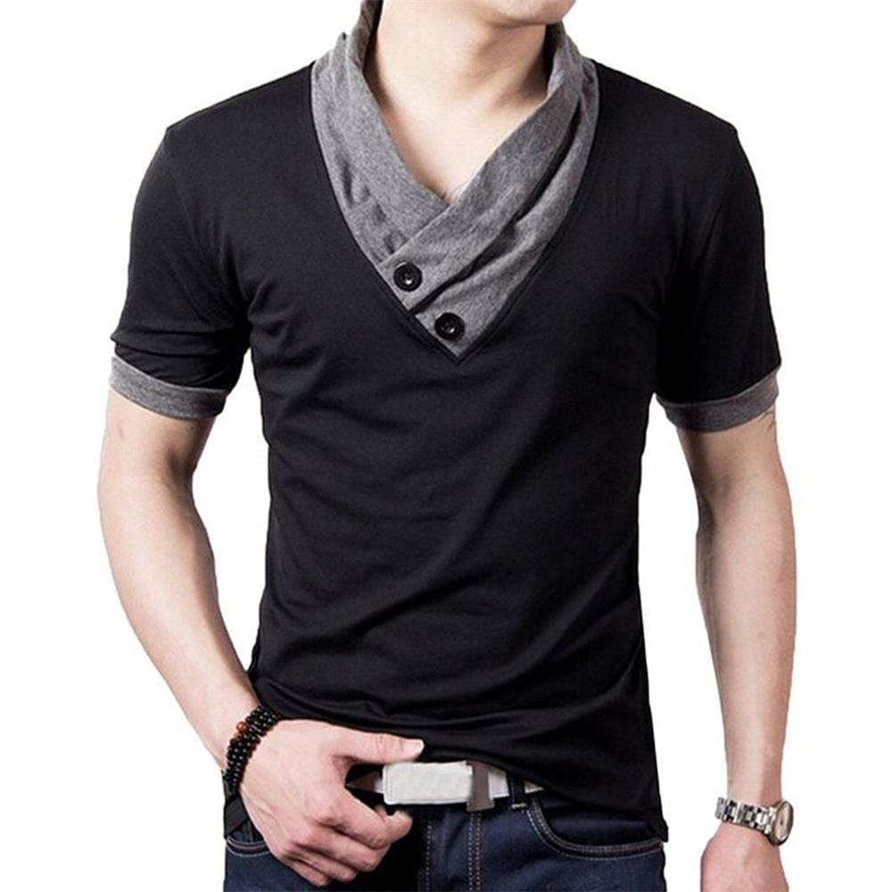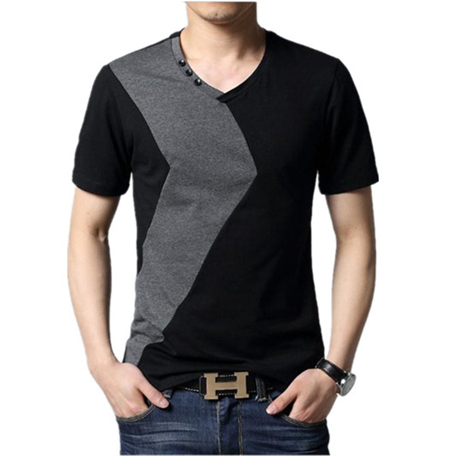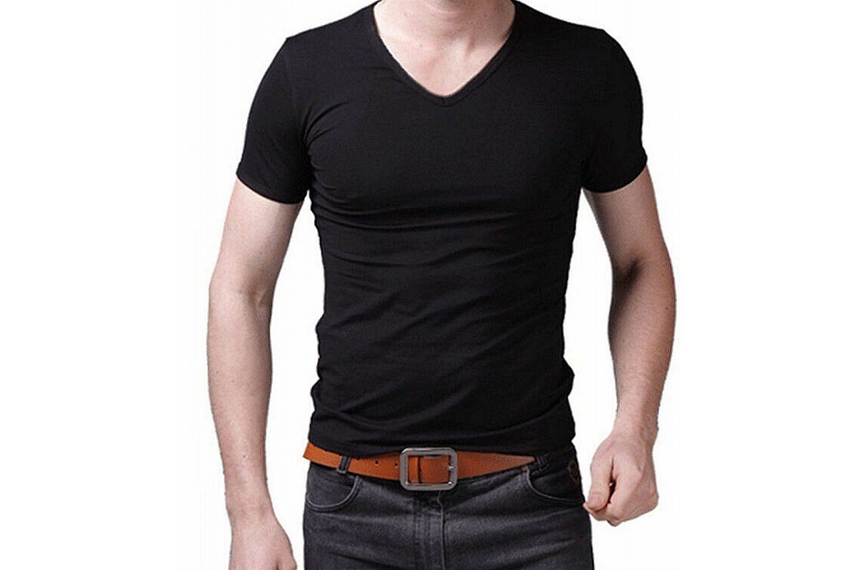 Черная футболка с треугольным вырезом мужская