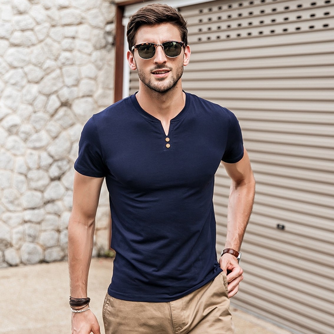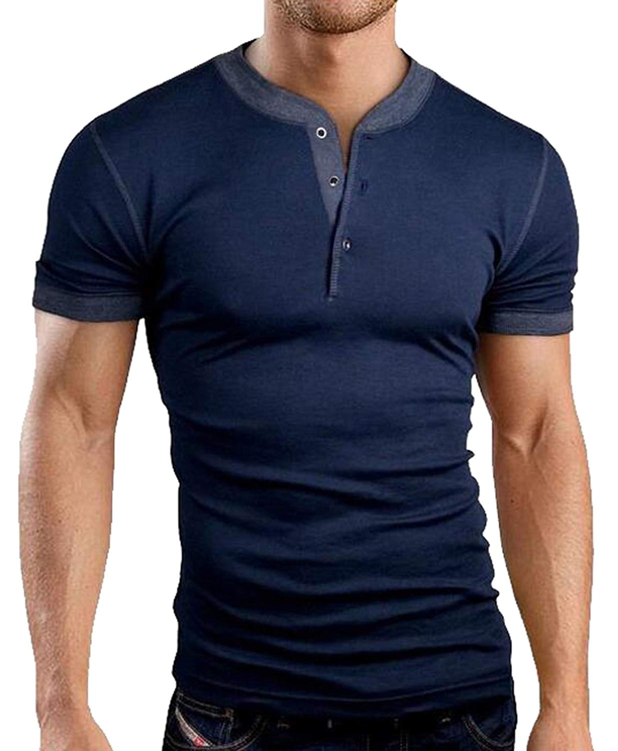Хенли футболка мужская с коротким рукавом