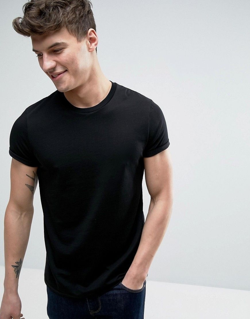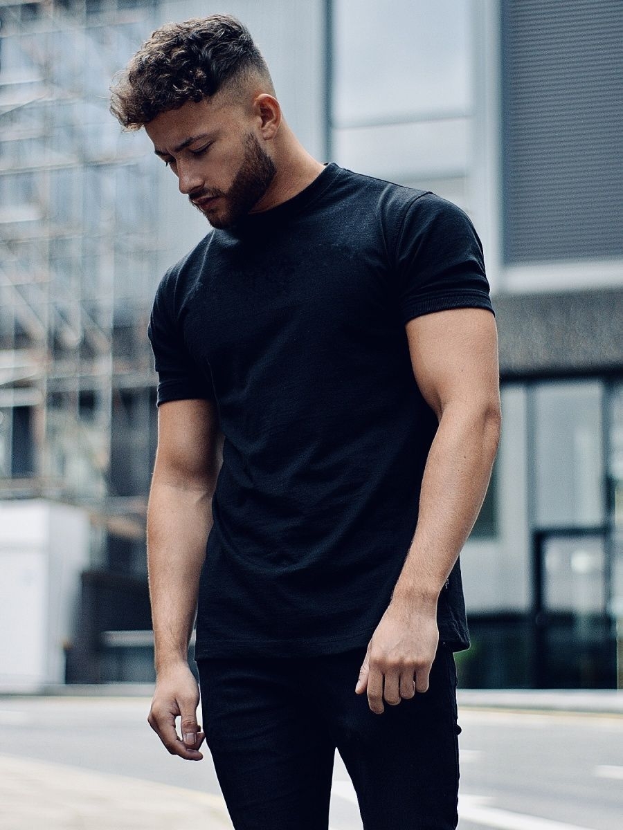 Парень в черной футболке вид со всех сторон