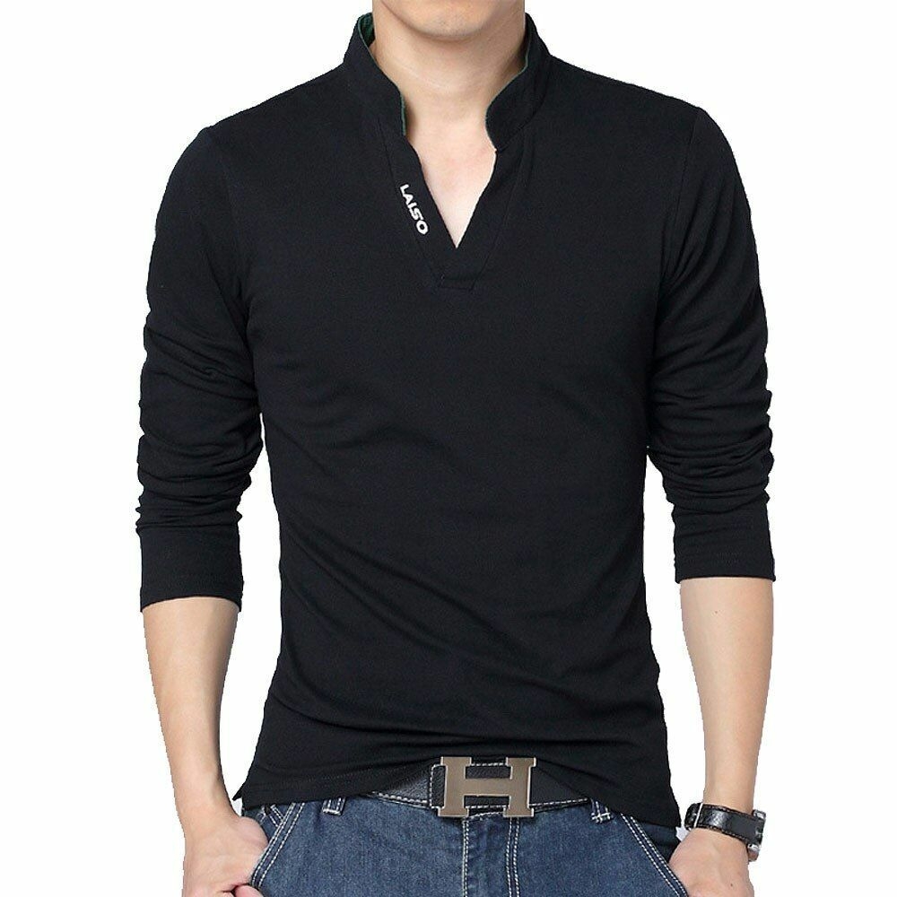 Polo t-Shirt Solid Color long-Sleeve Slim Fit Shirt men Cotton Polo